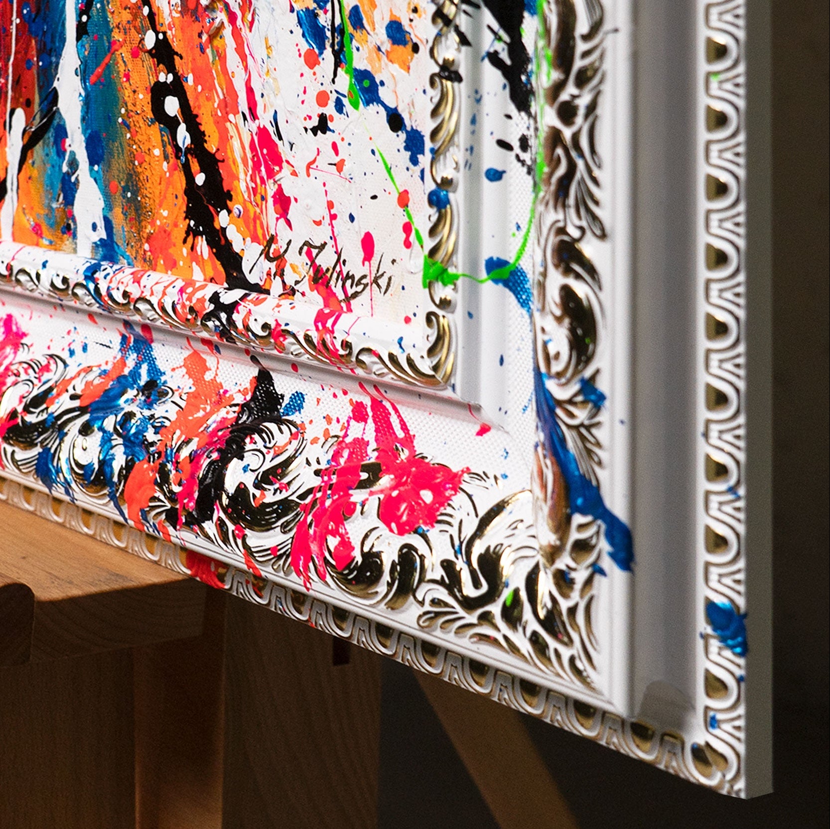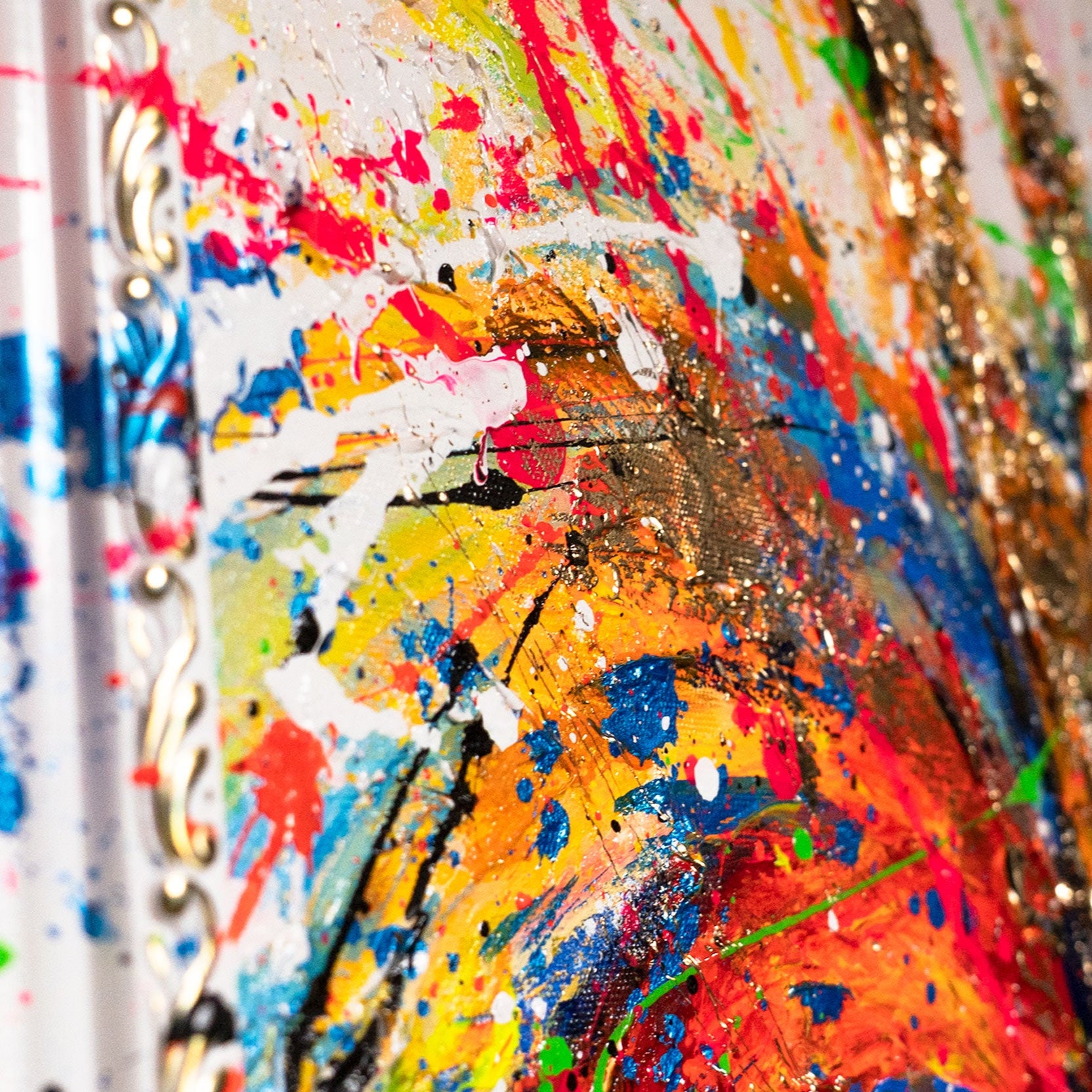 Abstract Painting on Canvas – Hand-Painted Art with Frame „King of Colors“