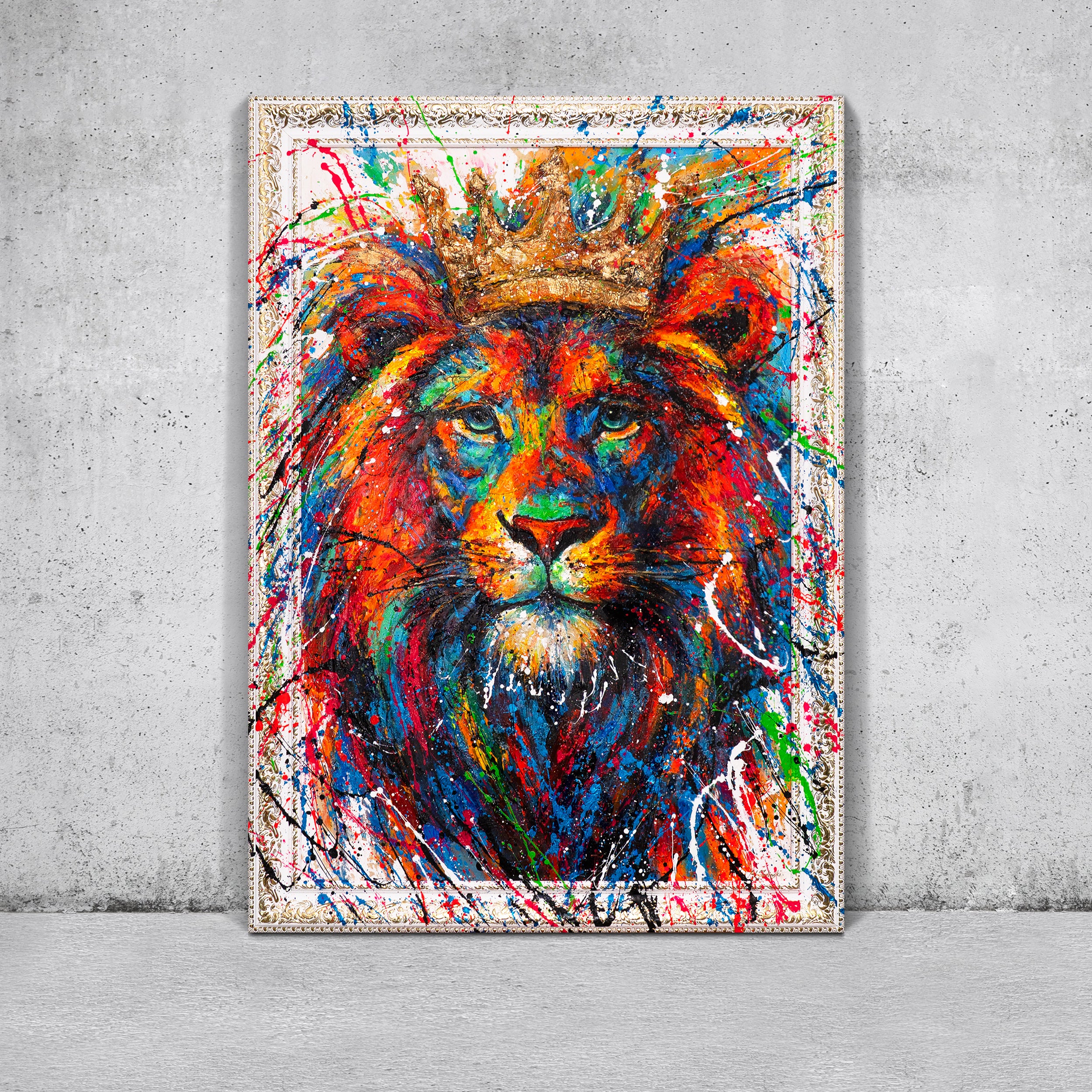 • Acrylmalerei Löwe abstraktes Leinwandbild im Studio