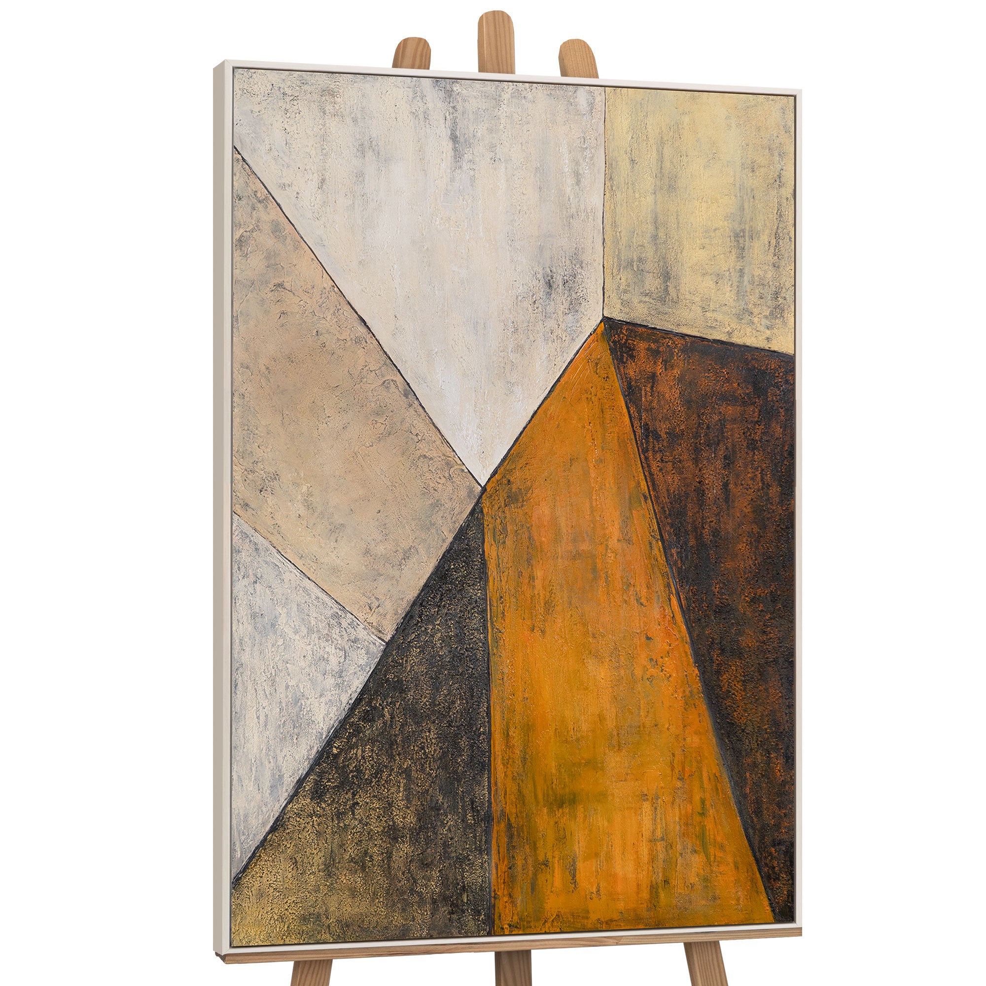 Abstrakte Kunst auf Leinwand mit Rahmen „Begegnung der Ebenen“ - Acrylmalerei in Erdtönen