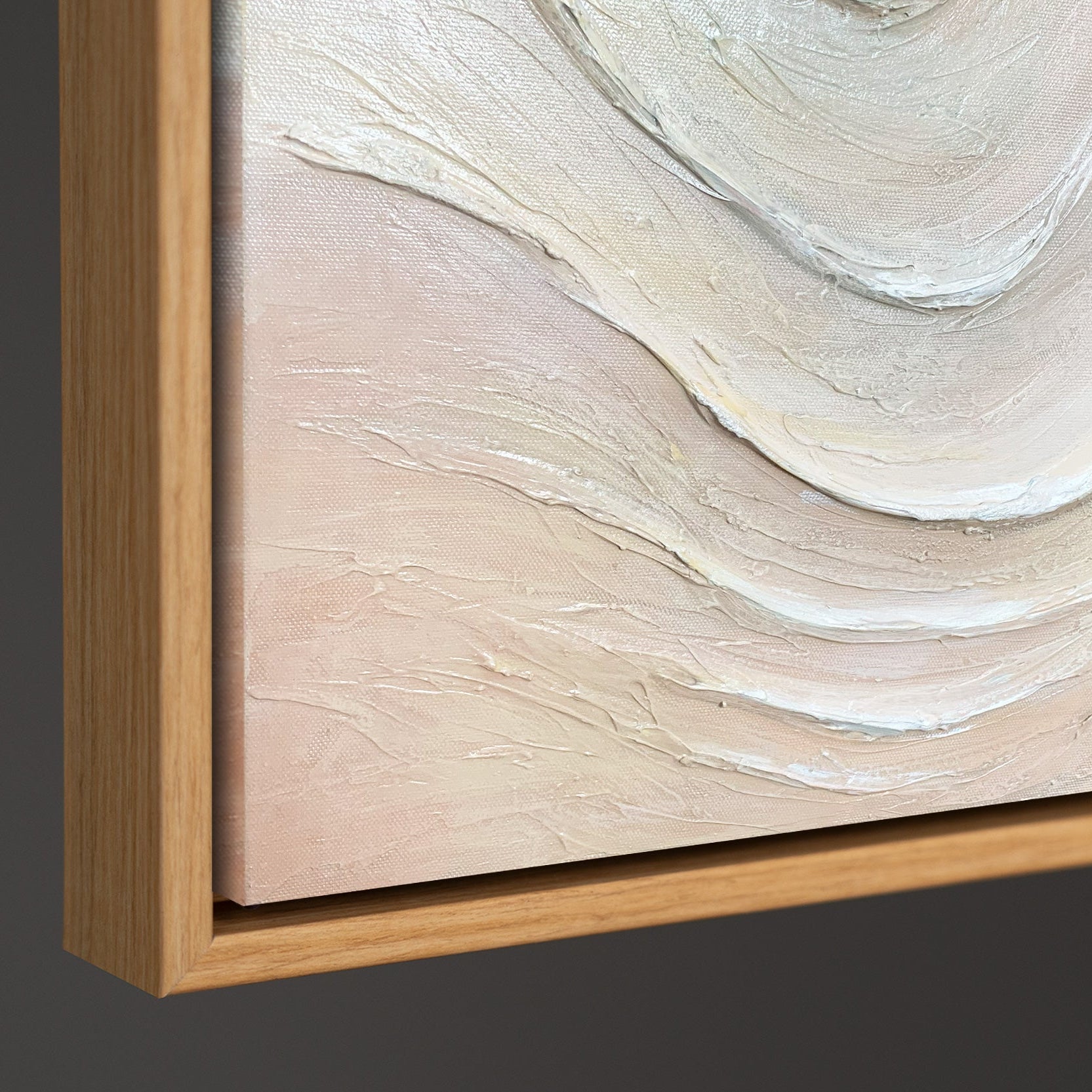 • Abstraktes Leinwandbild in Beige und Creme mit fließender Struktur