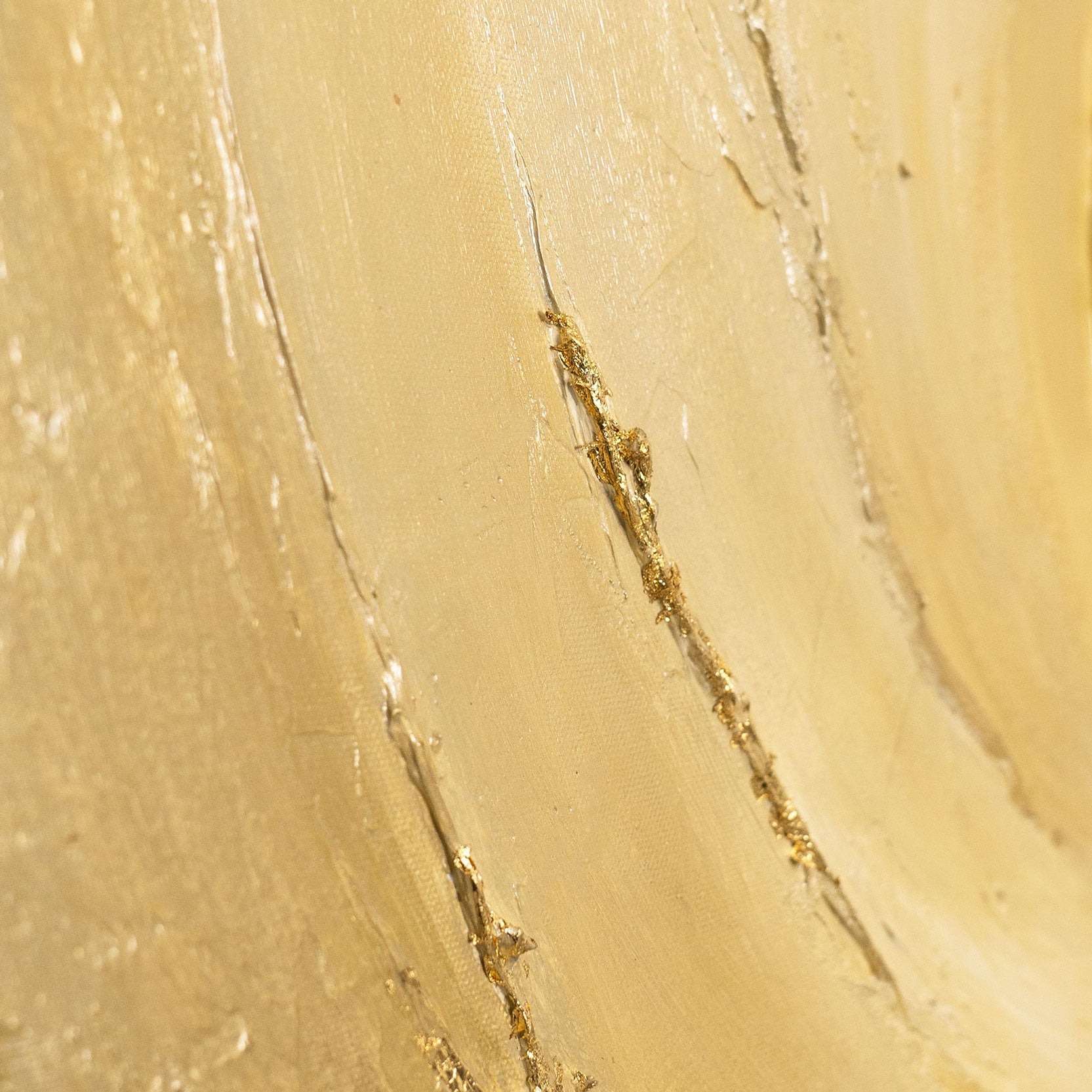 „Kreise der Zeit“ ist ein elegantes abstraktes Acrylgemälde in warmen Gold- und Beigetönen. Kreisförmige Bewegungen und feine Goldakzente erzeugen Tiefe, Ruhe und ein Gefühl von Kontinuität. Die strukturierte Oberfläche reflektiert das Licht sanft und verleiht dem Werk eine hochwertige, zeitlose Ausstrahlung.