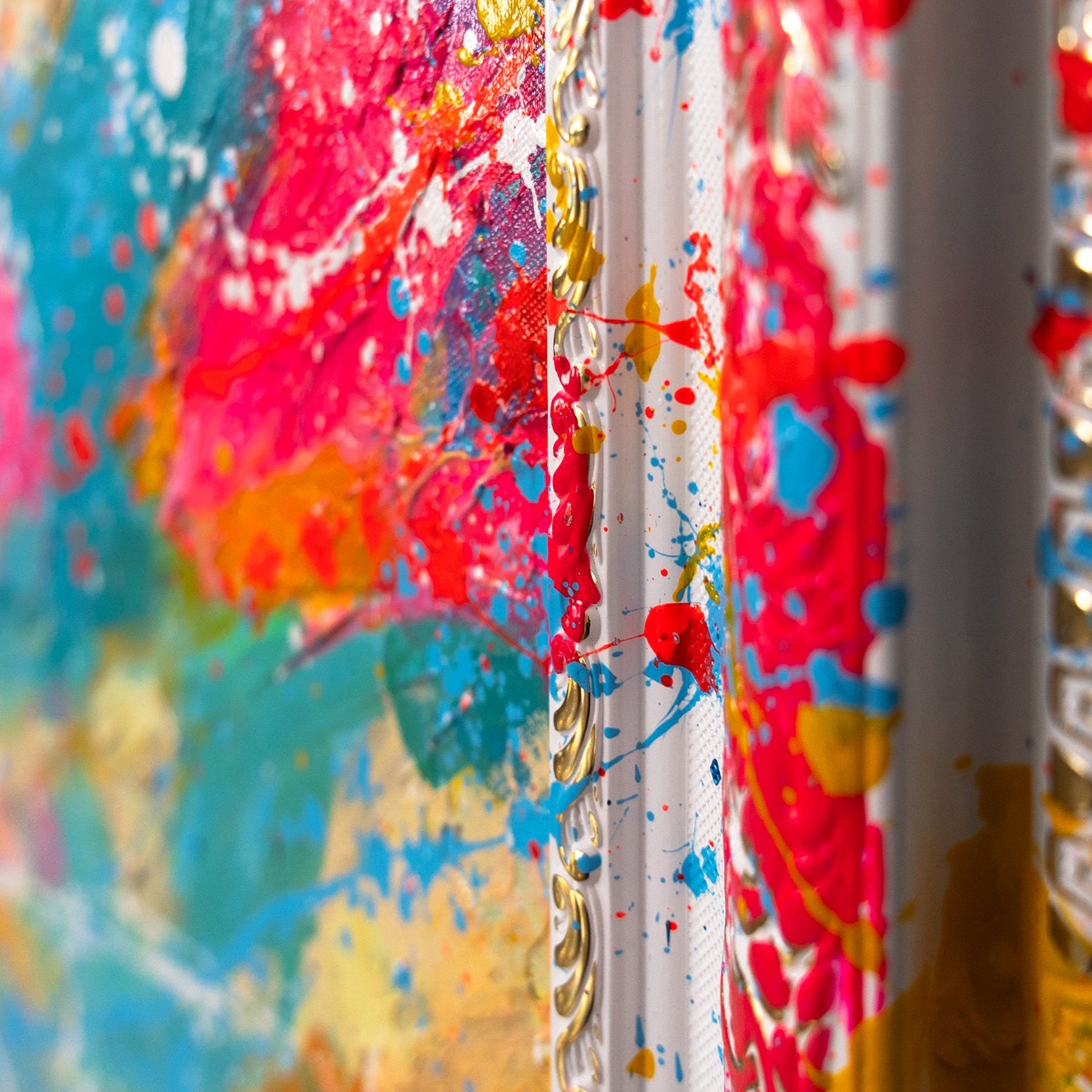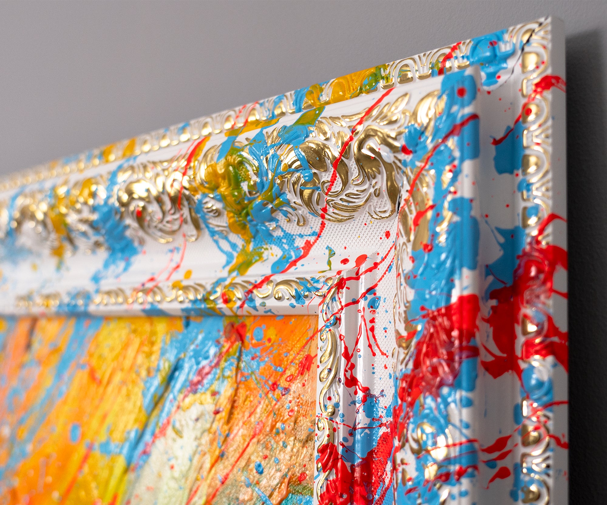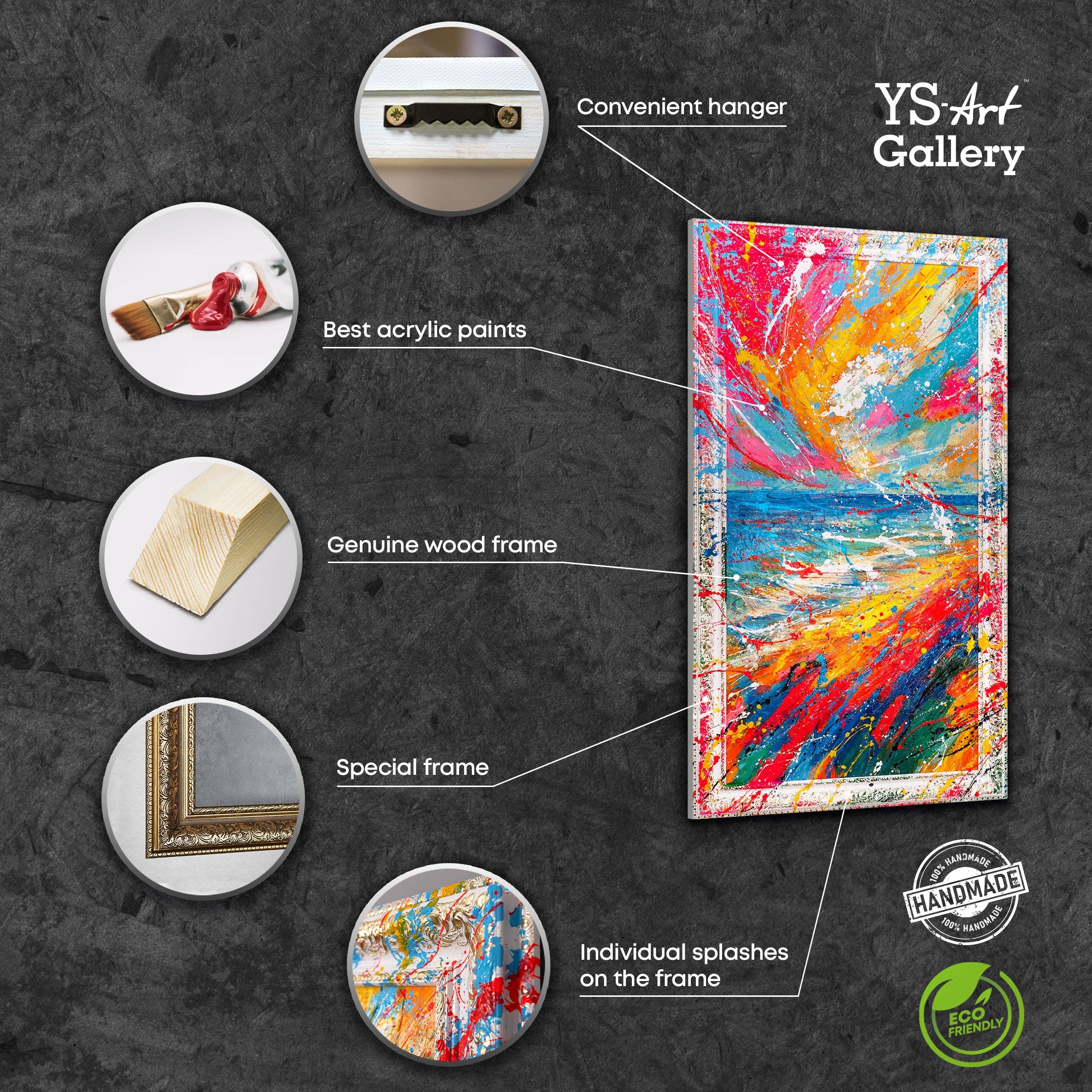 Perfect for modern living room wall decor, striking abstract art, or large canvas paintings that fill your space with positive energy and color intensity. This artwork combines the power of color with exclusive handcraft and high-quality framing.