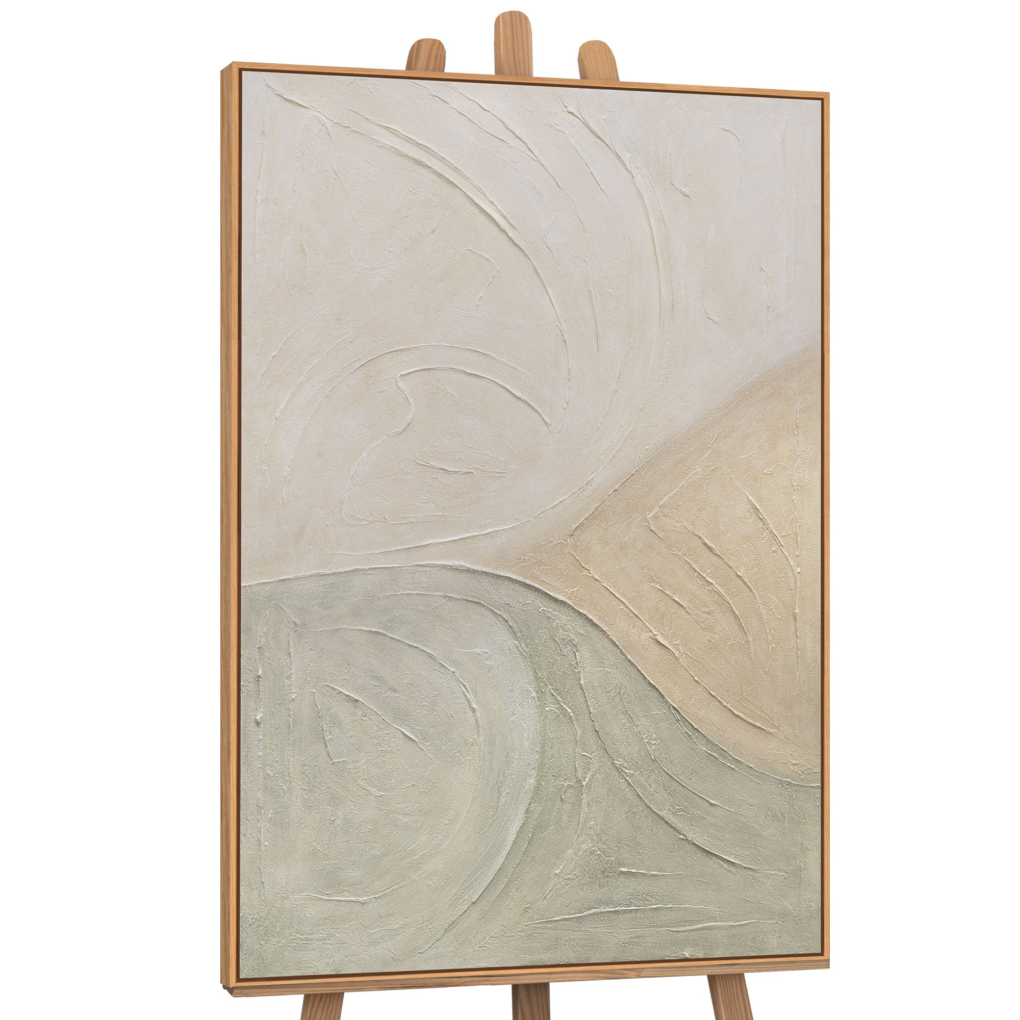 Harmonische Ästhetik: Die sanften Wellen und Strukturen in Creme, Salbei und Sand passen perfekt zu modernen Einrichtungsstilen und machen dieses Hochzeitsbild zu einem lebenslangen Begleiter.