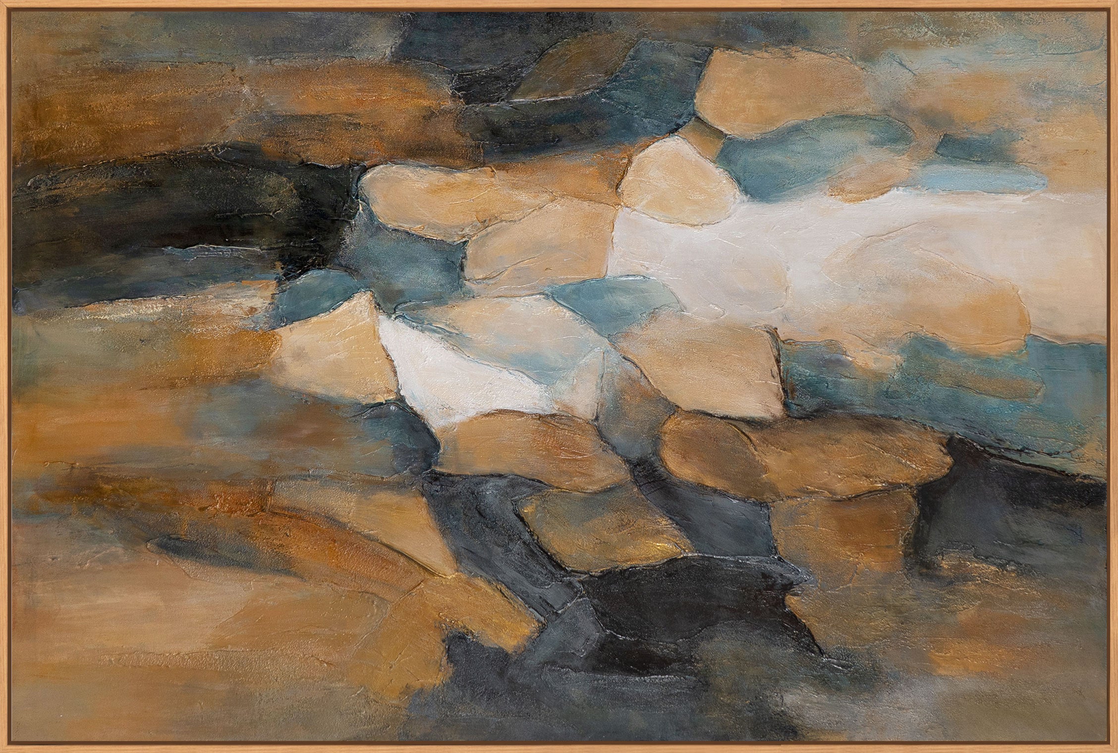 The canvas painting is presented framed and is particularly well-suited as bedroom art for relaxing retreats. The muted color palette enhances the serene ambiance and blends harmoniously into modern and timeless interiors.