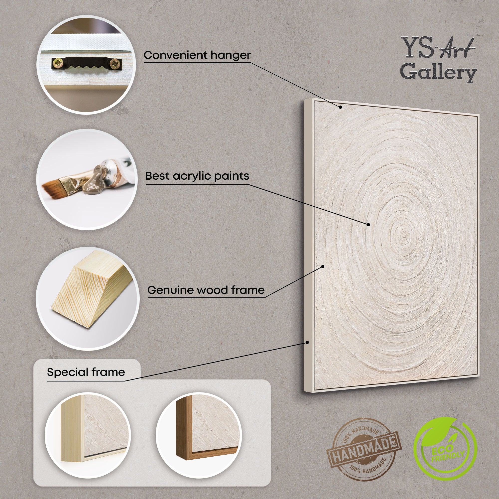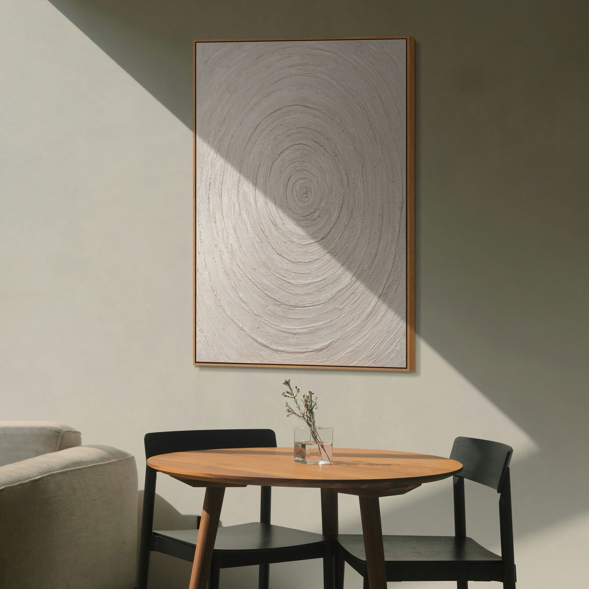 Bring harmony and tranquility into your home with this handcrafted abstract wall art. The concentric circles in soft Beige and natural tones evoke waves or tree rings, giving the artwork unique depth and symbolic power.