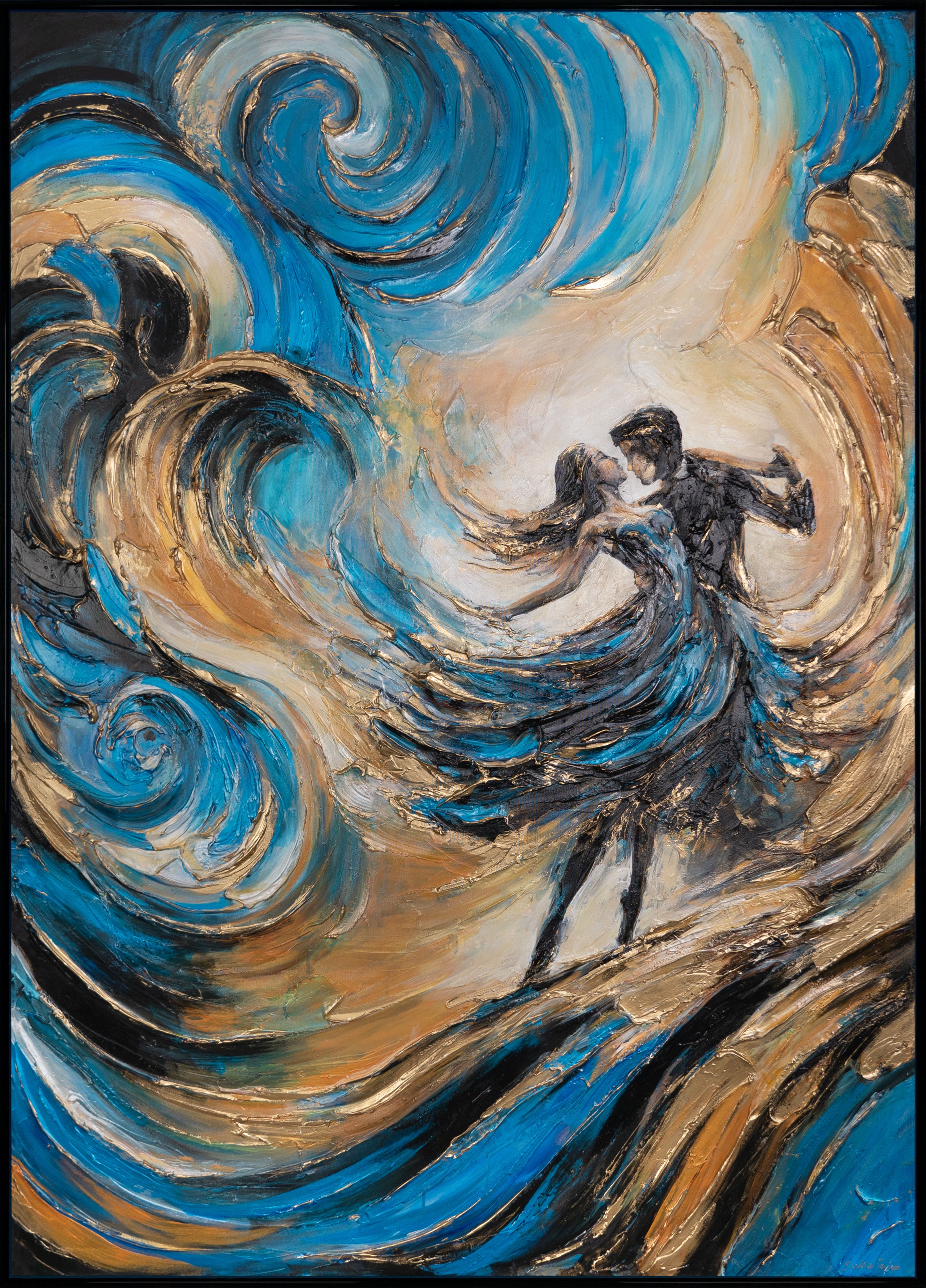 • Wohnzimmer mit Kunst – Acryl Leinwand Tanzpaar Blau Gold