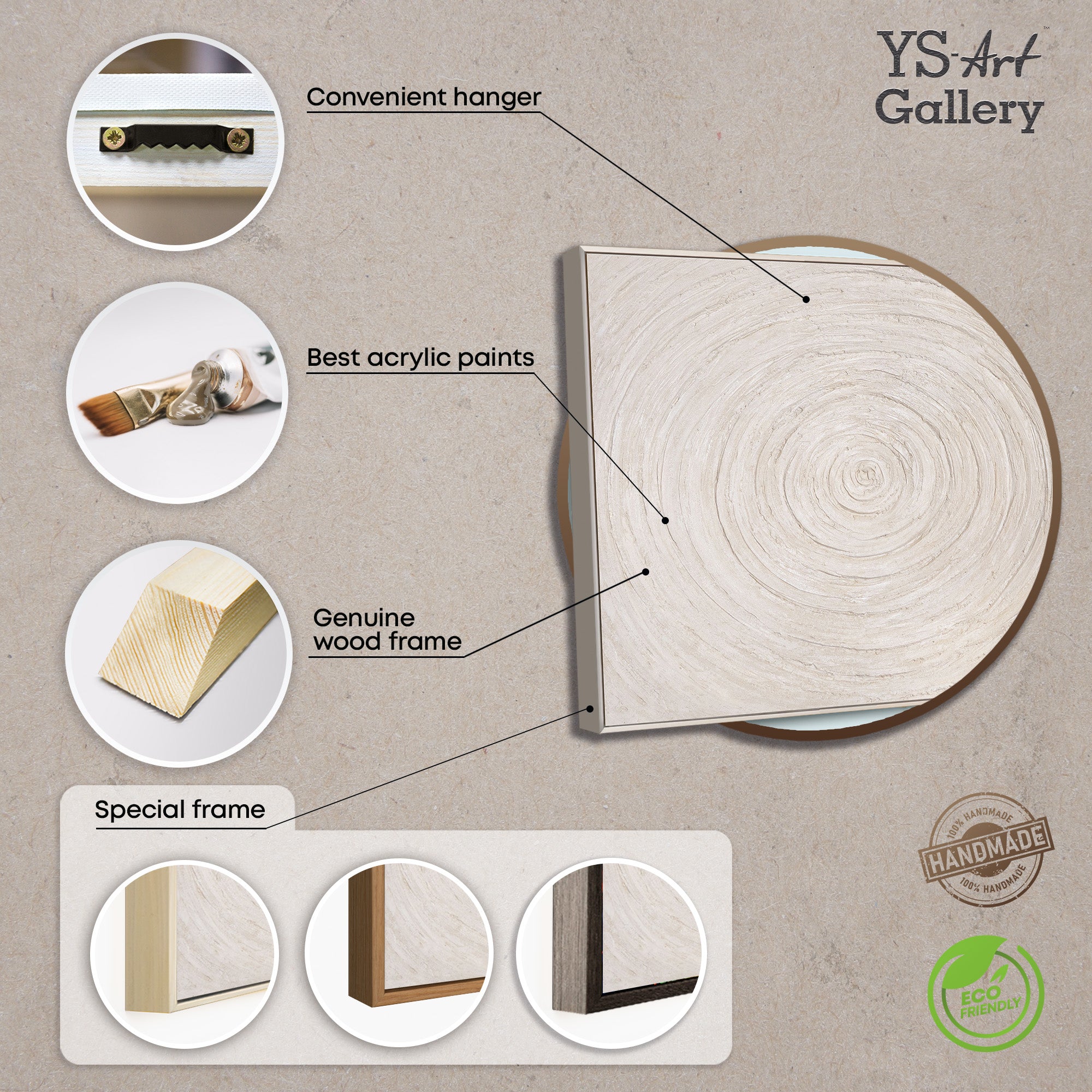 This hand-painted textured artwork blends harmoniously into modern, minimalist, and Scandinavian interiors. Its tranquil color palette and circular composition make it a natural and calming focal point in living rooms, bedrooms, hallways, or offices. The high-quality craftsmanship and understated elegance make this painting an ideal element for sophisticated interior design.