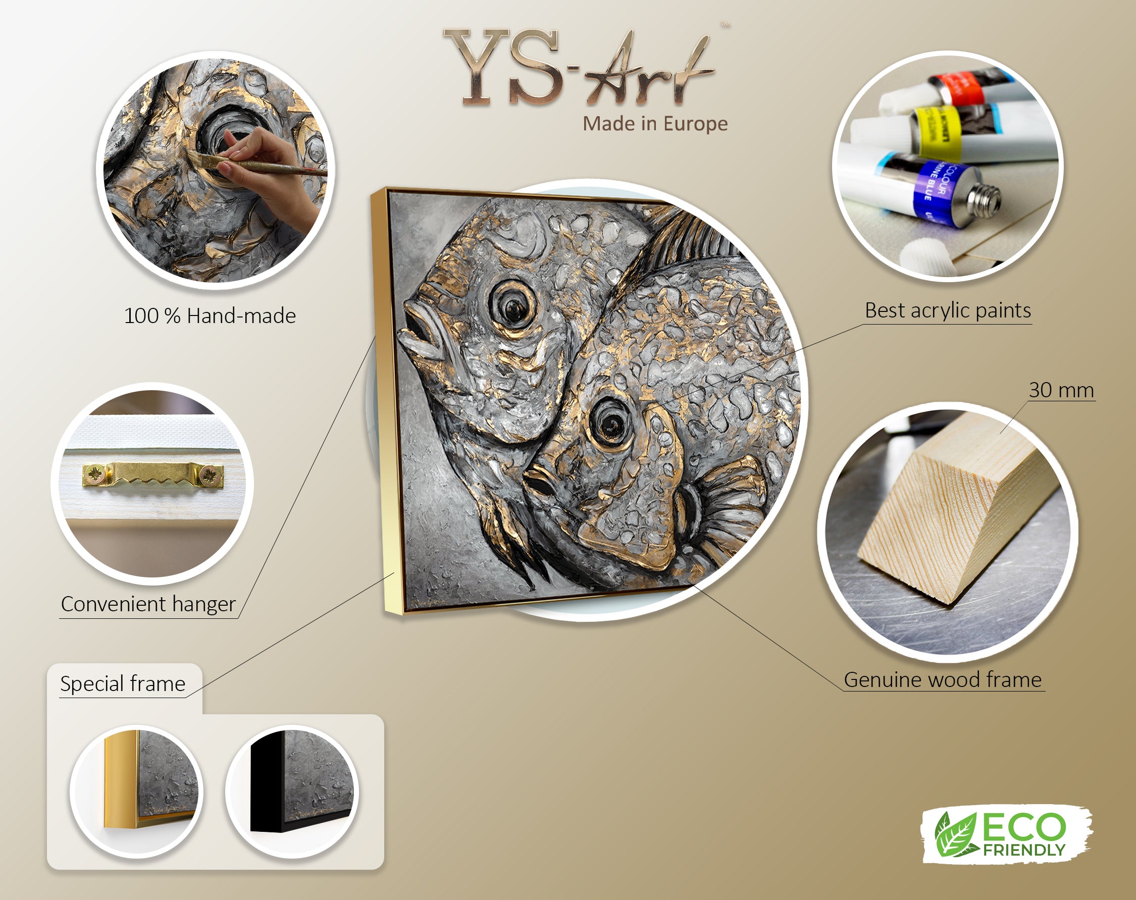 • Acryl Kunstwerk Fisch Gold Grau Handgemalt Relief