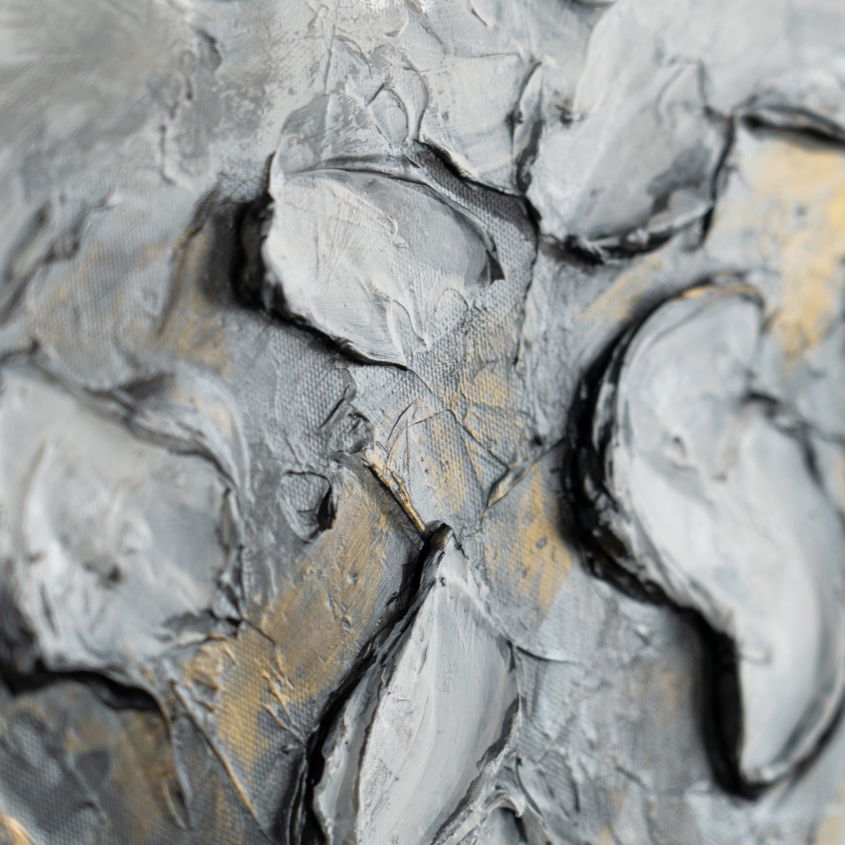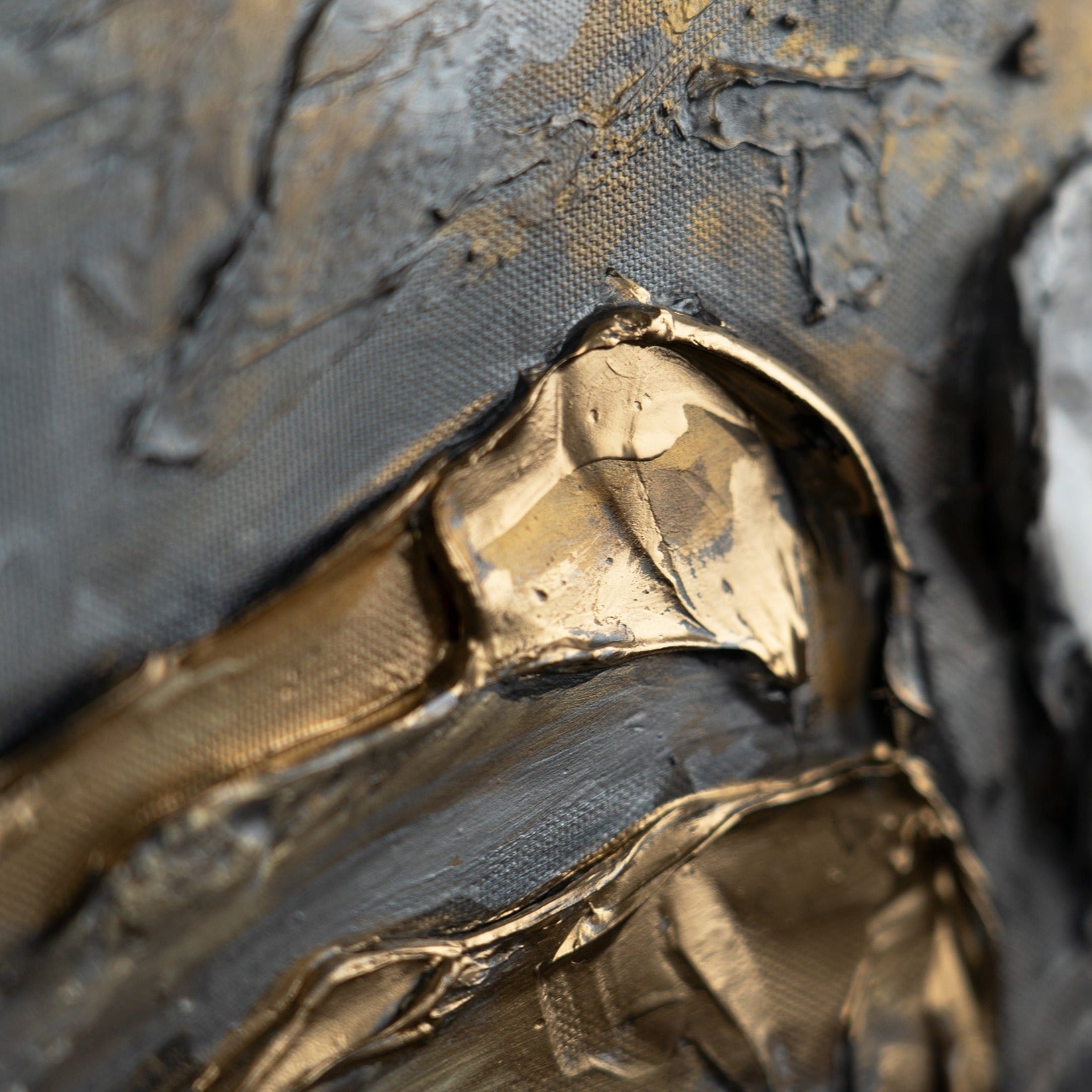 • Handgemaltes Wandbild Fisch Struktur Grau Gold