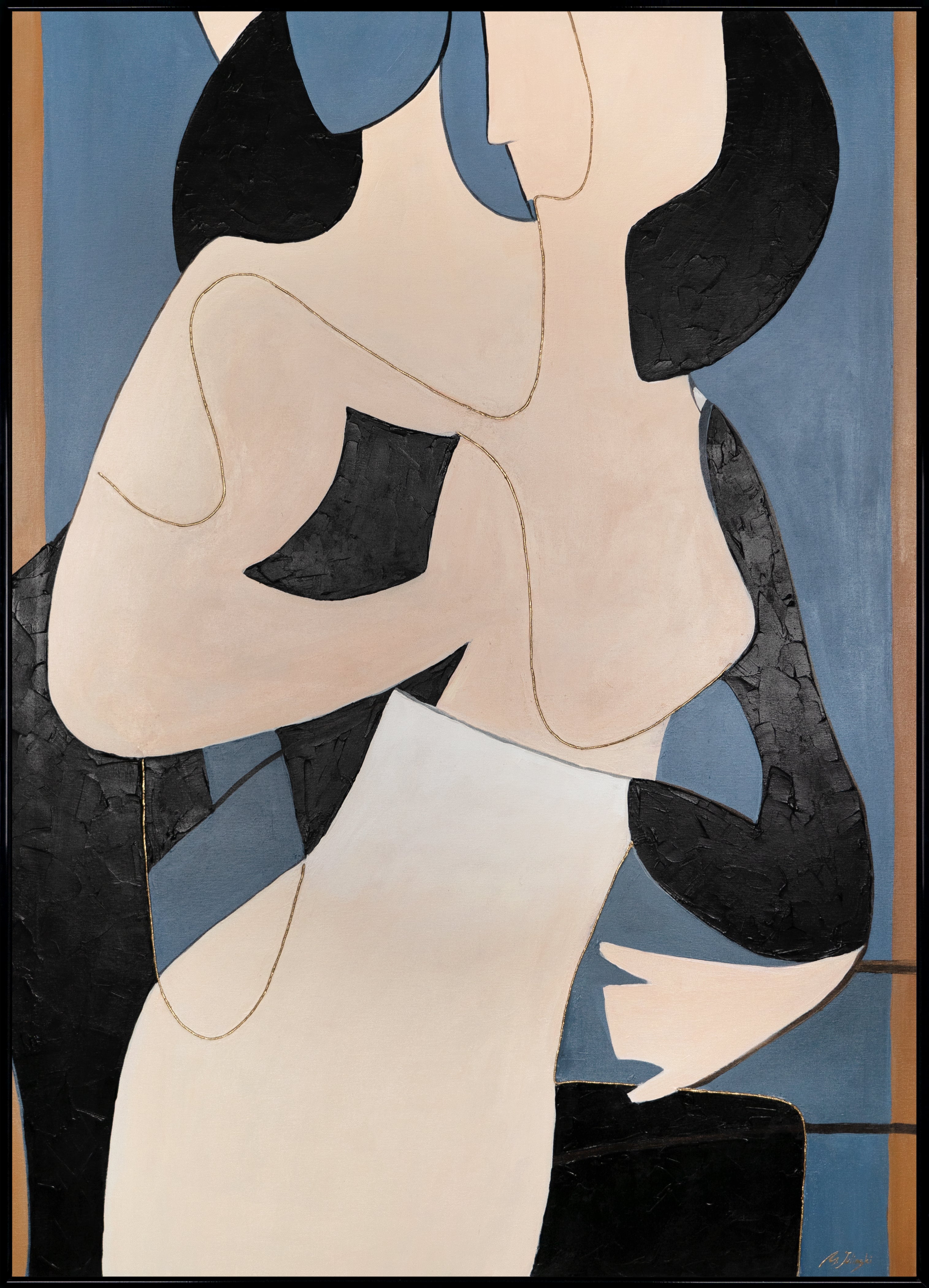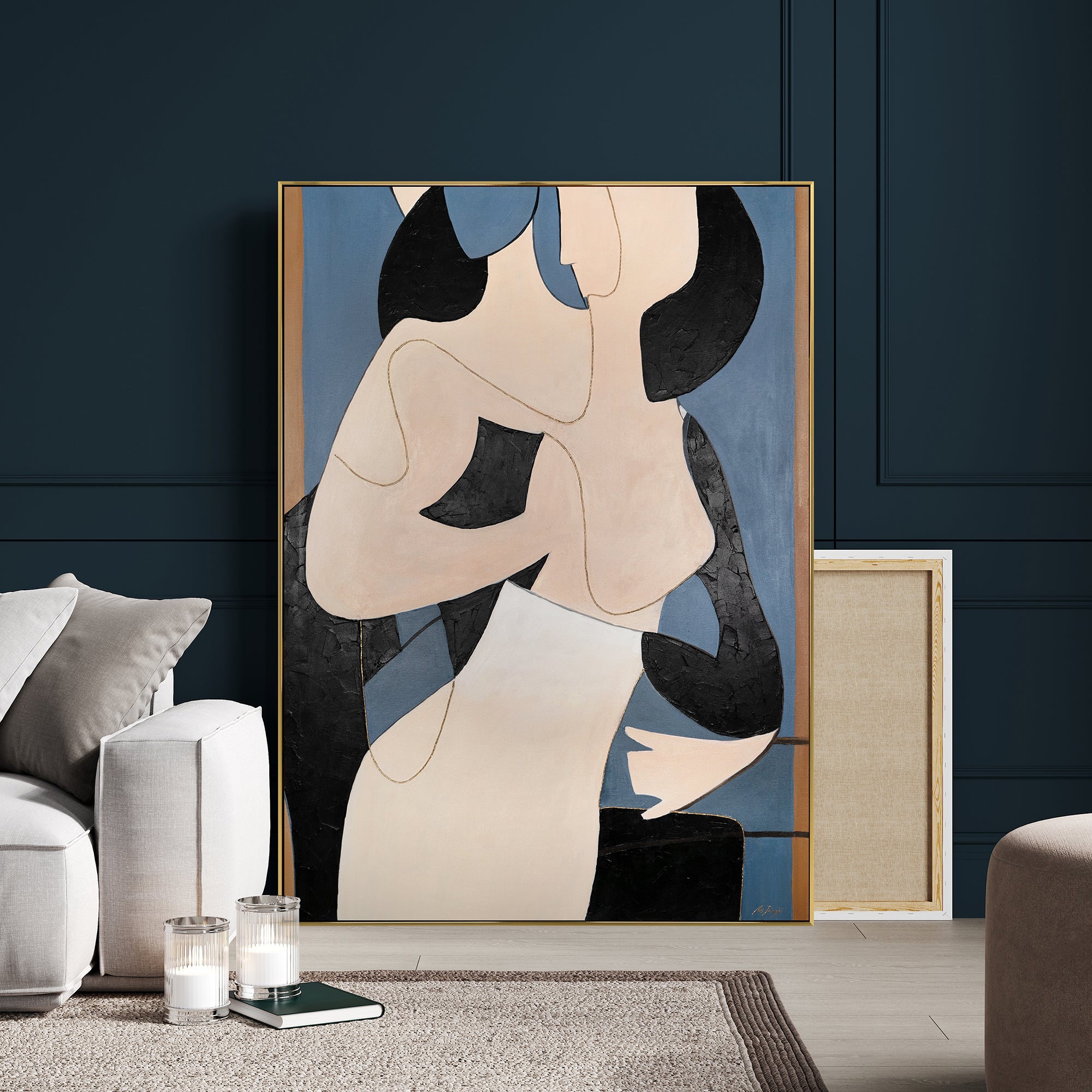 Large abstract wall art with frame "Intertwining"