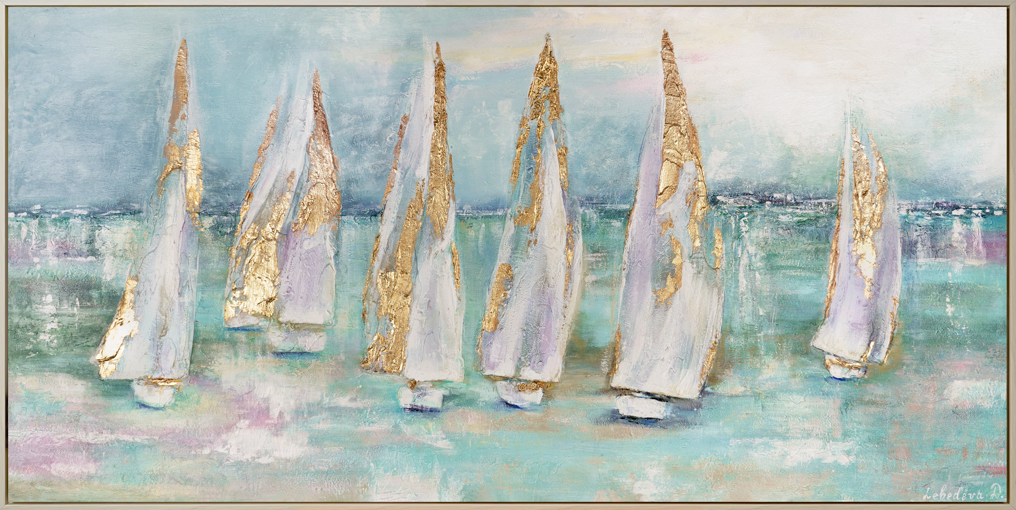 Abstract painting with frame "Sailboats" acrylic painting on canvas