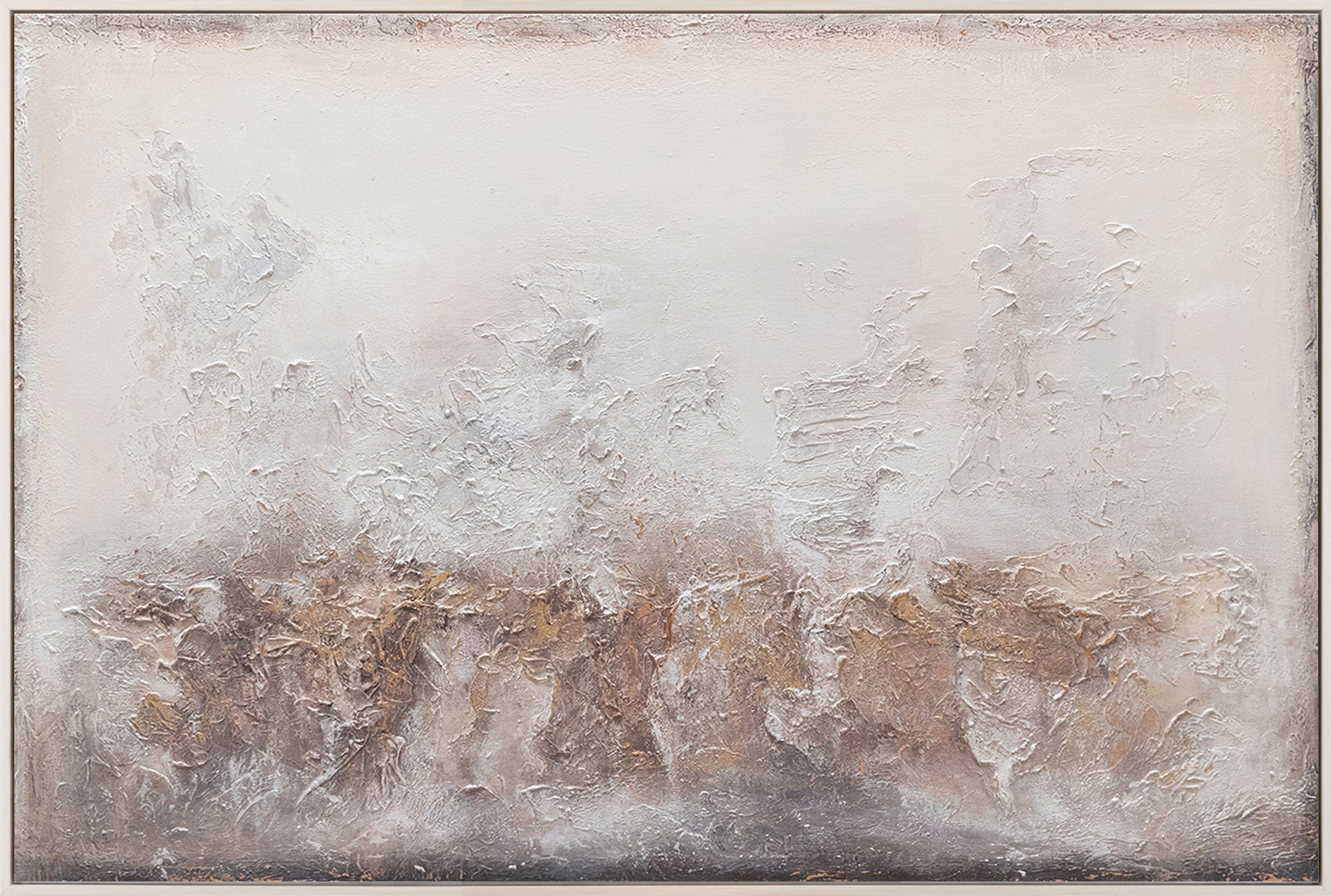 This abstract acrylic painting on canvas embodies modern art in its purest form. With soft, neutral tones and a texture that adds depth and dimension, this artwork is a perfect addition to any stylish living room.