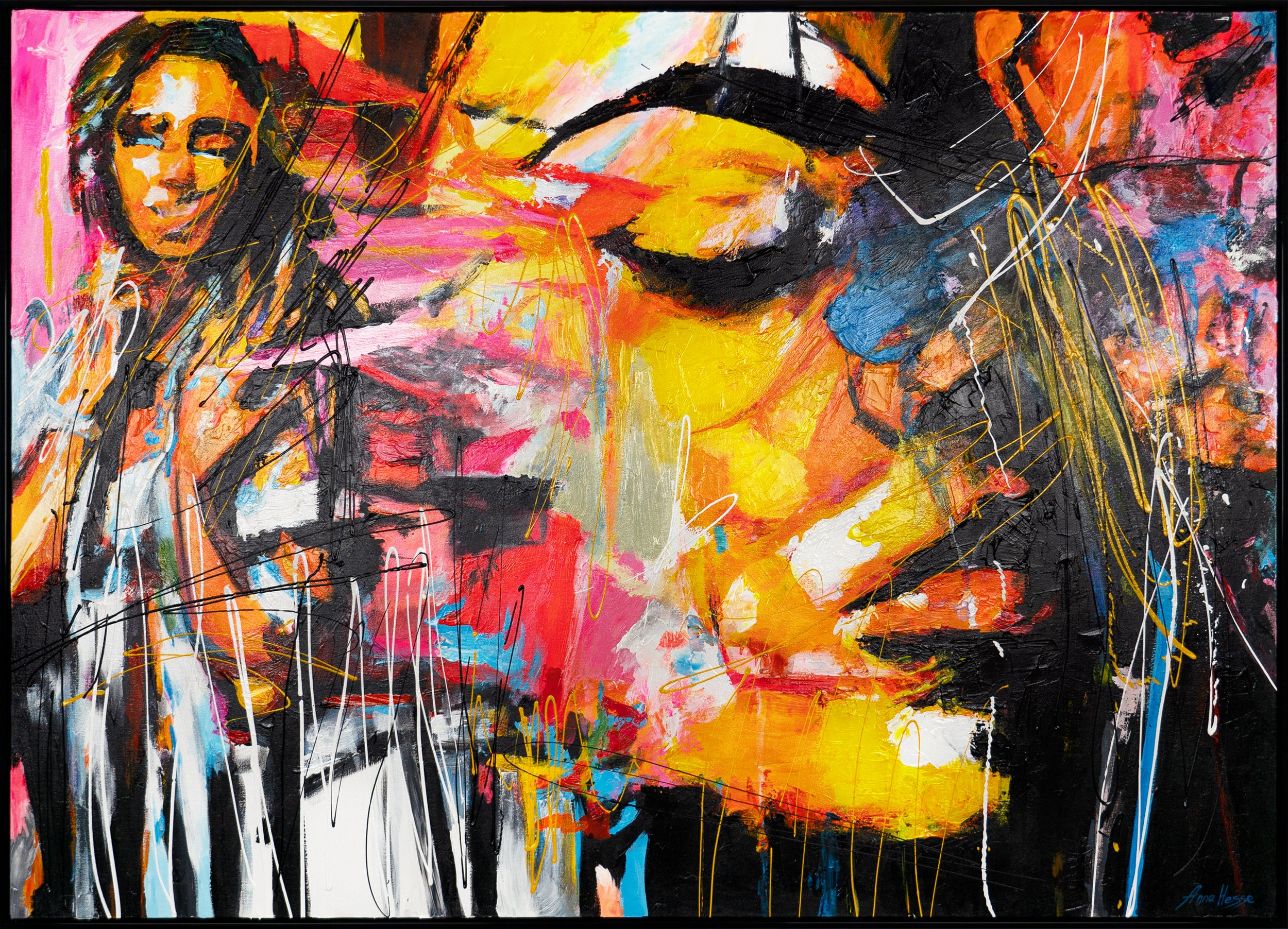 Enrich your home or office with this colorful abstract artwork, featuring vibrant red, yellow, and pink tones to create a dynamic and modern composition. The image features bold contrasts and expressive brushstrokes. It is 100% hand-painted and is highlighted by an elegant frame.
