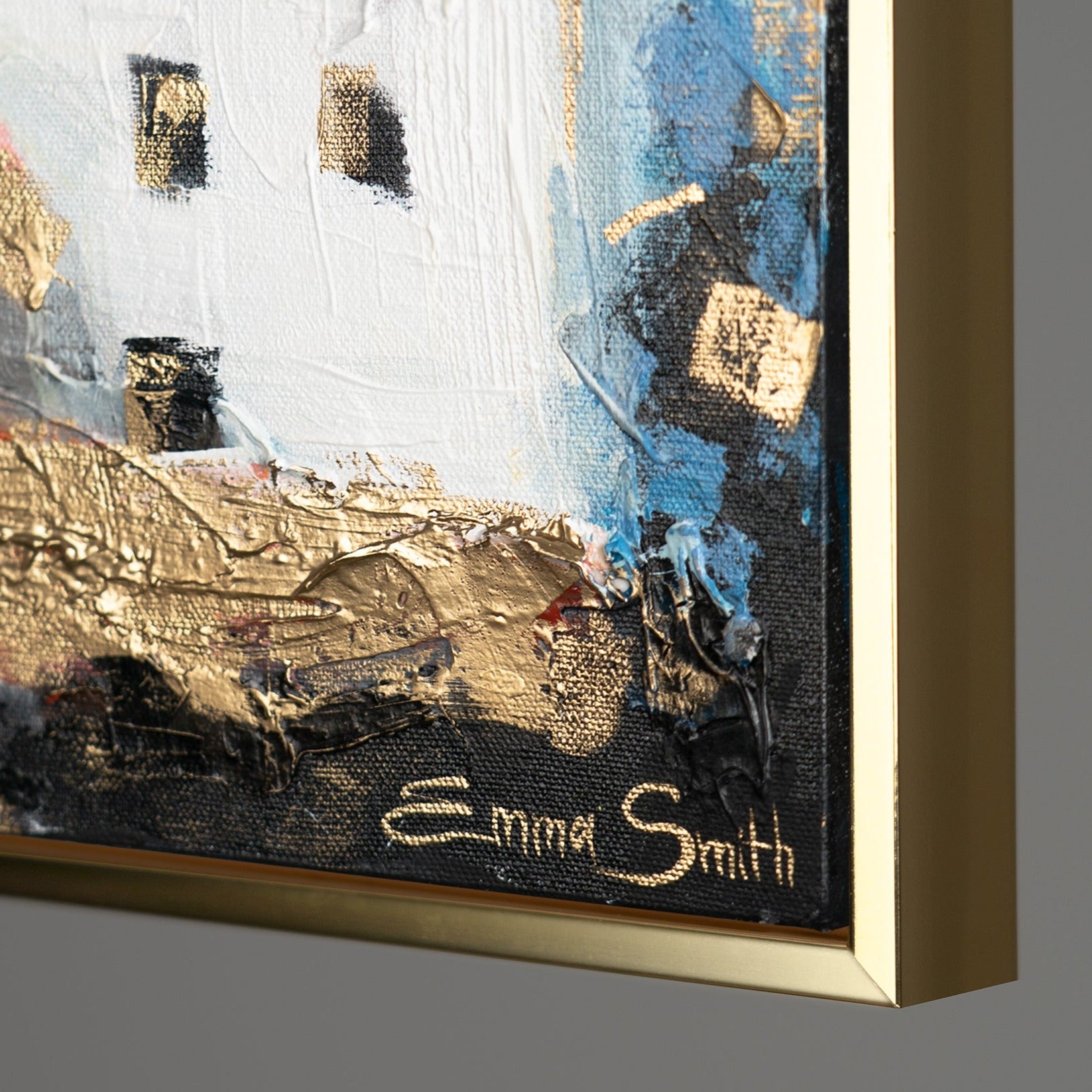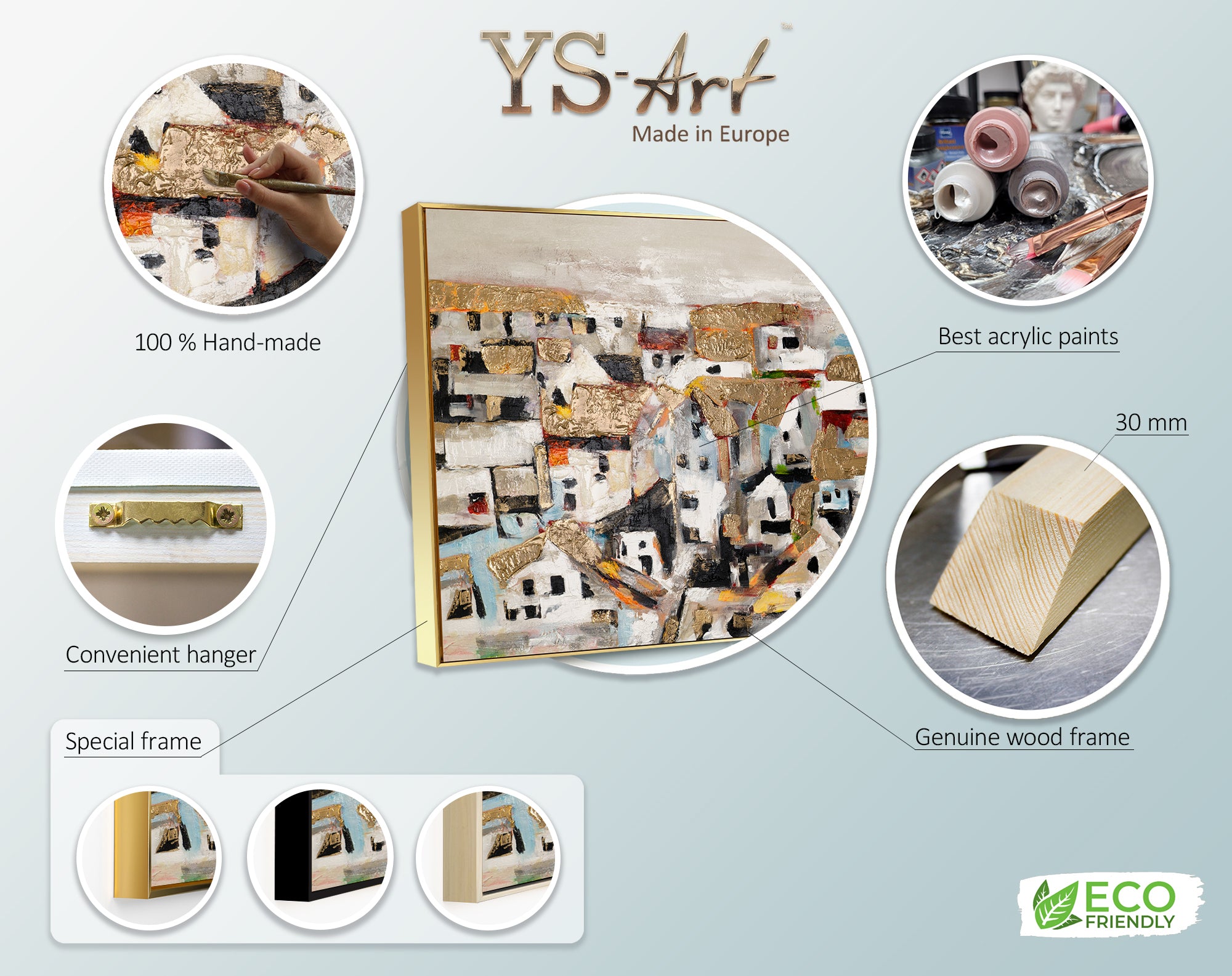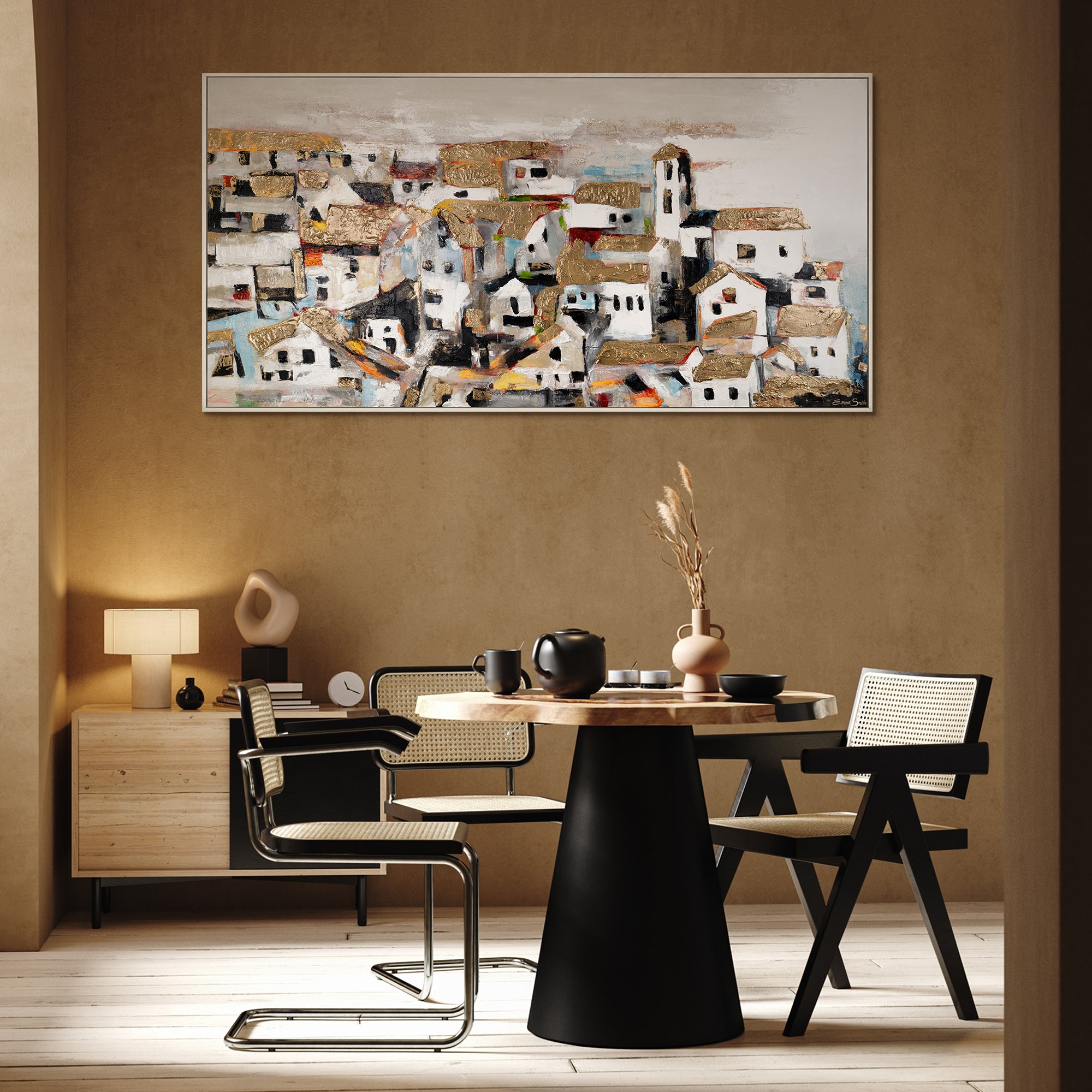 • Handgemaltes Acryl Relief Stadt Mediterran Goldtöne