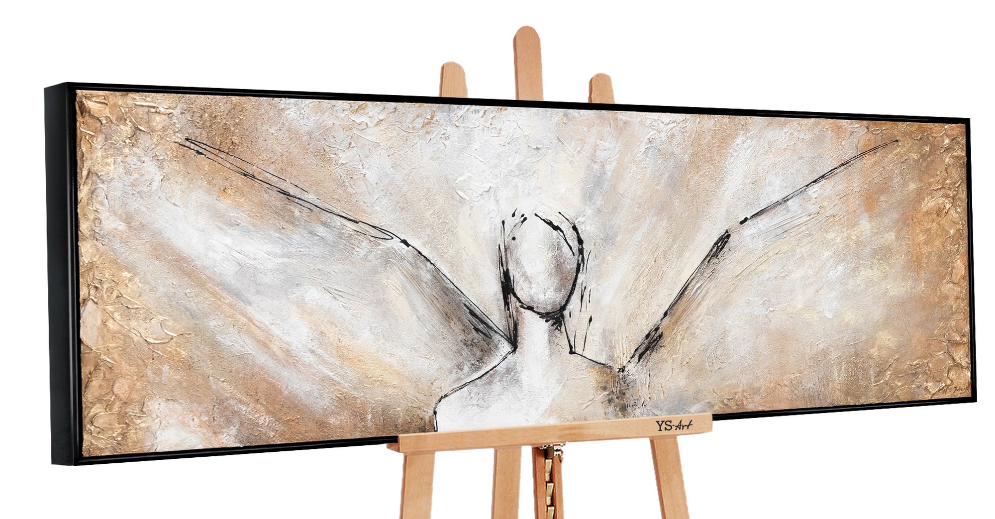 • Handgemaltes Acrylbild Engel Gold Beige im Wohnzimmer