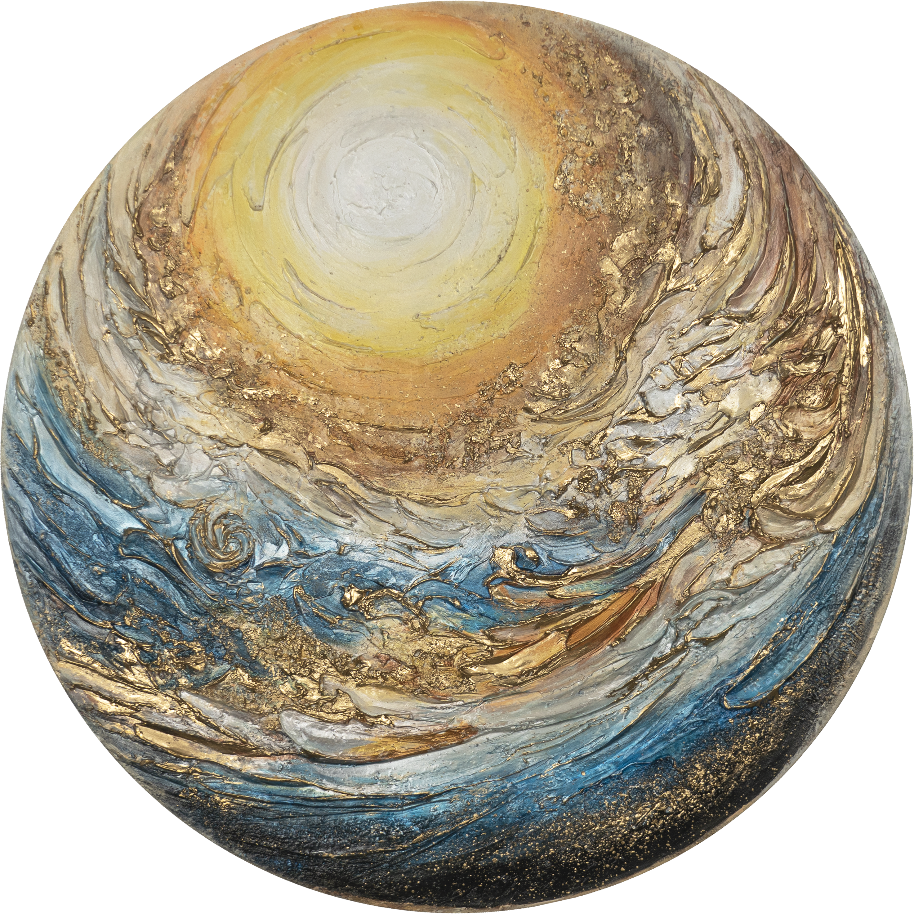 Bring cosmic warmth into your space with "Goldsphere" – a planet-inspired round acrylic painting that glows in the dark. Featuring hand-painted textures in gold, white, and brown, this original canvas artwork creates an elegant and uplifting atmosphere. Framed and ready to enhance your living room, office, or bedroom with modern acrylic wall decor.