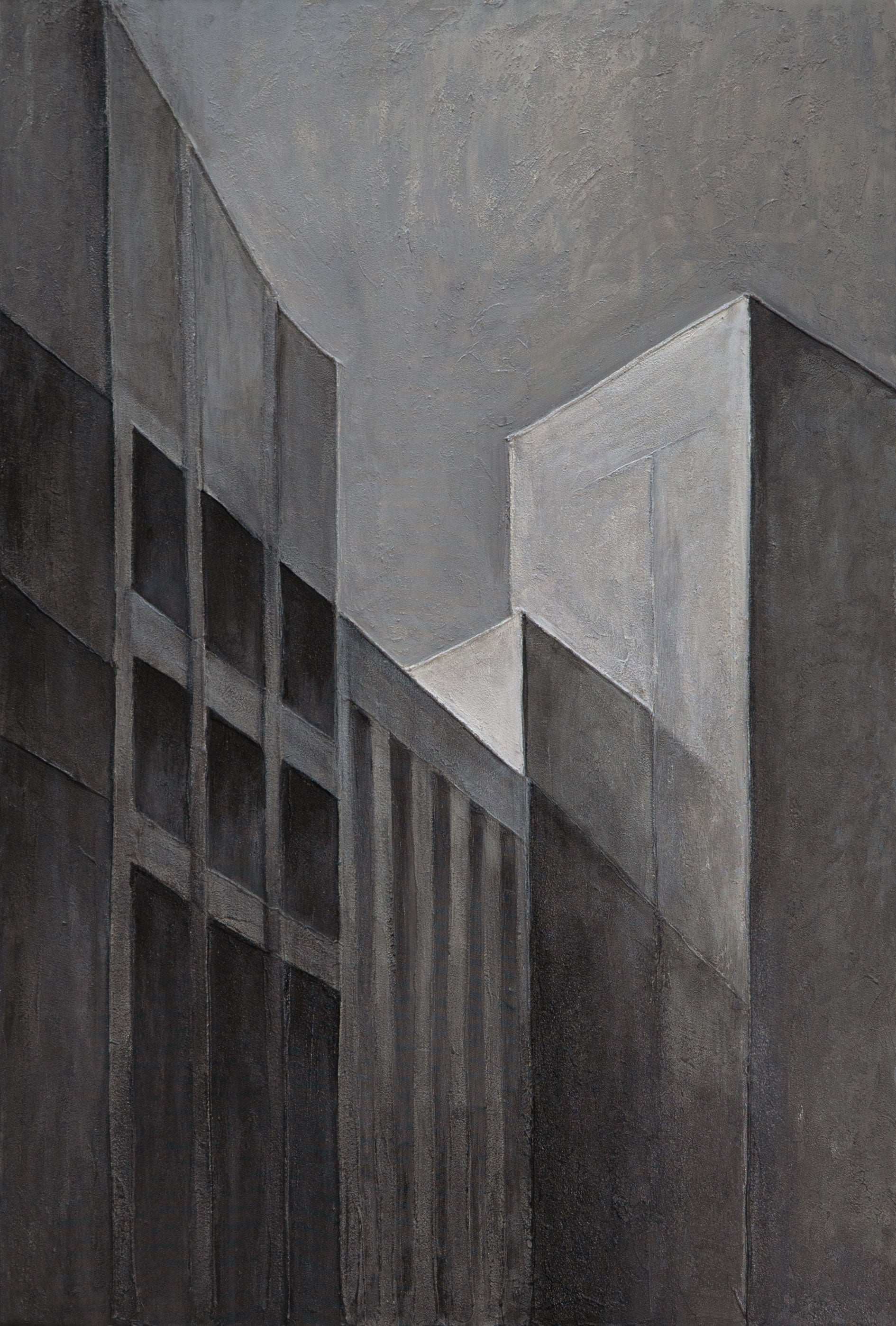 Abstract framed painting “Cityscapes” – Modern acrylic painting in grey & black