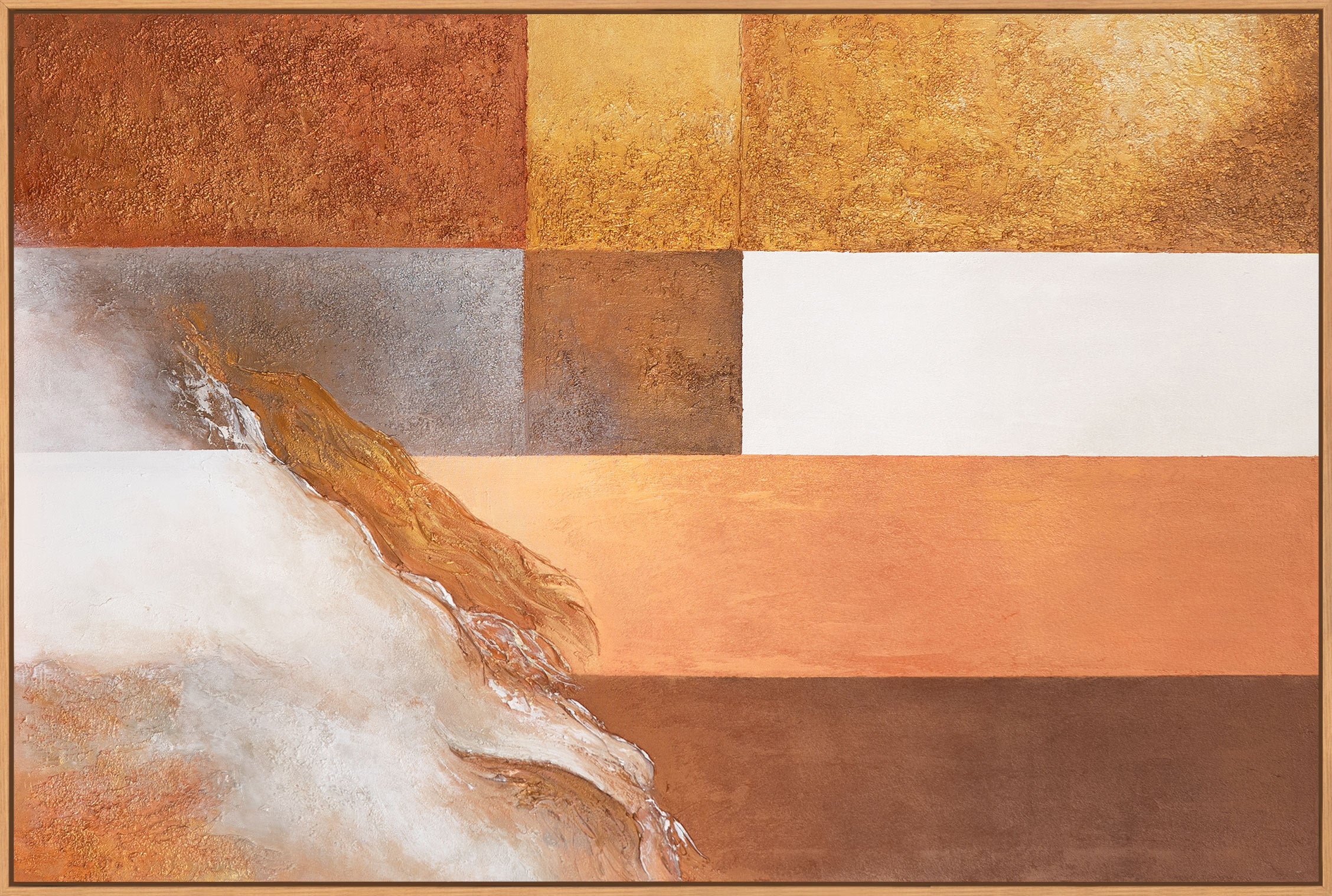• Abstrakte Strukturmalerei in Ocker und Goldtönen, Detailaufnahme