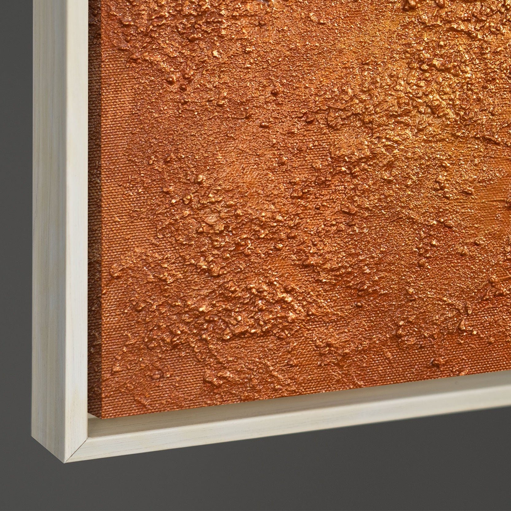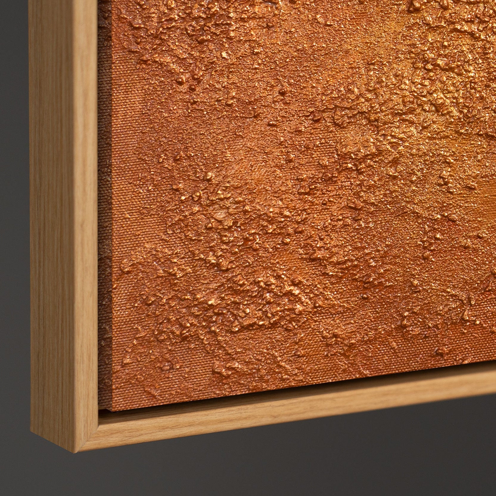 • Seitliche Ansicht eines strukturierten Leinwandbildes, stabiler Holzrahmen