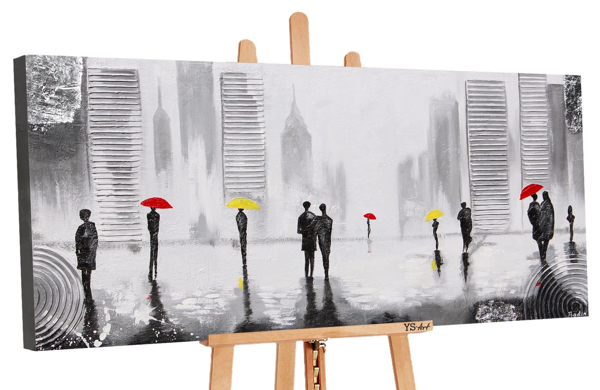 • Handgemaltes Stadtbild Figuren mit Regenschirm Acrylkunst