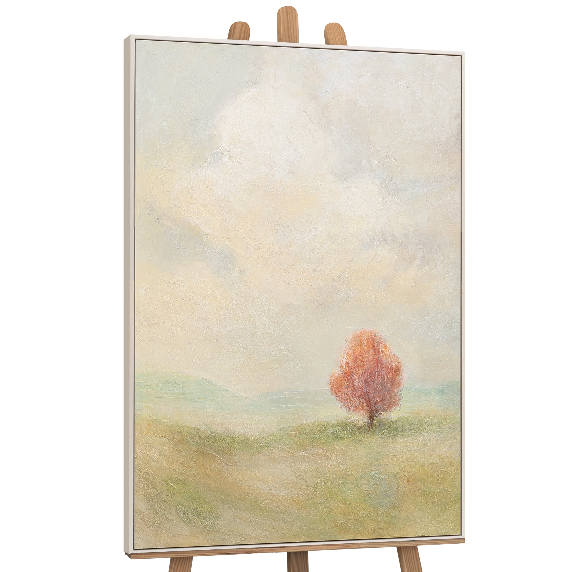 Painted on canvas and stretched over a solid wooden stretcher frame, this canvas landscape painting features a gently textured surface that enhances depth and atmosphere without strong contrast. A protective water-based varnish is applied to preserve colour harmony and surface quality over time.