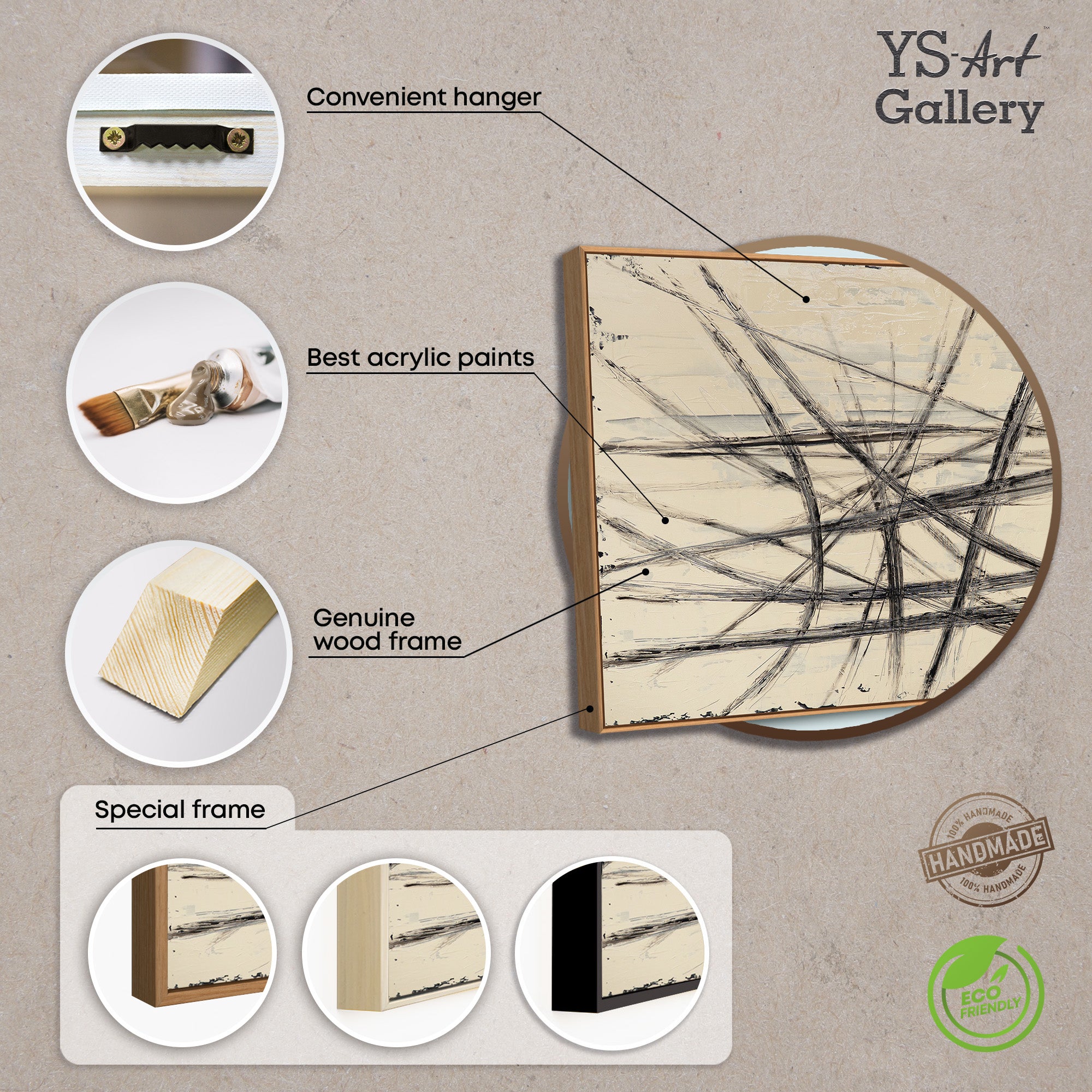 • Produktübersicht eines abstrakten Leinwandbildes mit Linienmotiv