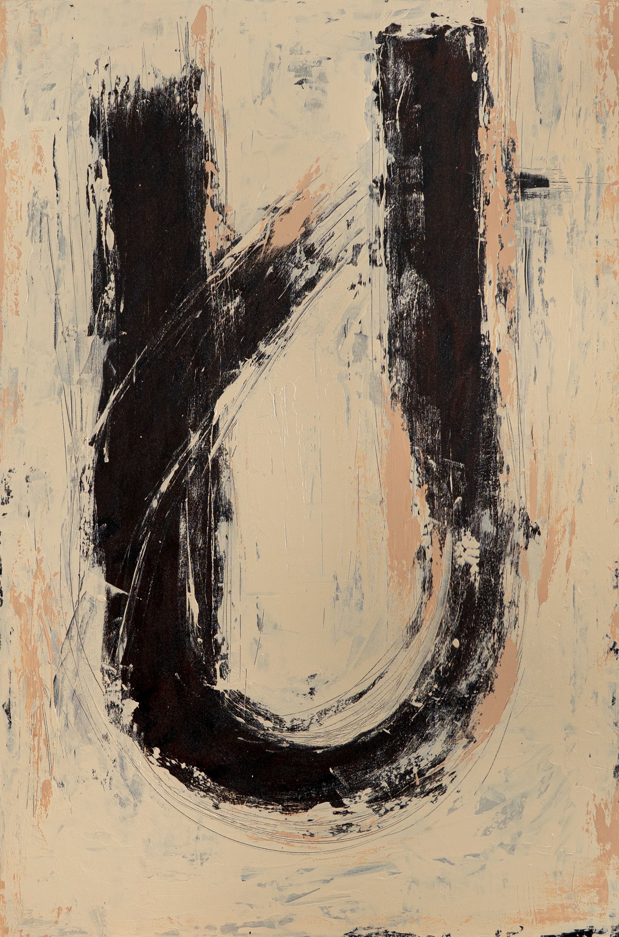 This abstract painting on canvas is conceived as a powerful visual mark within a contemporary interior. Inner Mark features a bold, gestural form set against a textured neutral background, creating a composition that feels instinctive, expressive and intentional. The graphic presence makes it a strong modern statement painting for interiors that favour art with character and depth.