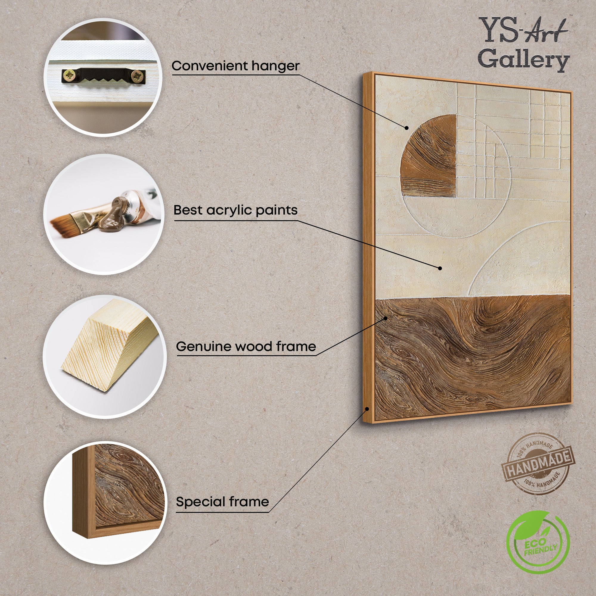 This painting combines structure, geometry and materiality into a calm, modern visual language and is ideal for anyone who appreciates clear forms and high-quality hand-painted art.