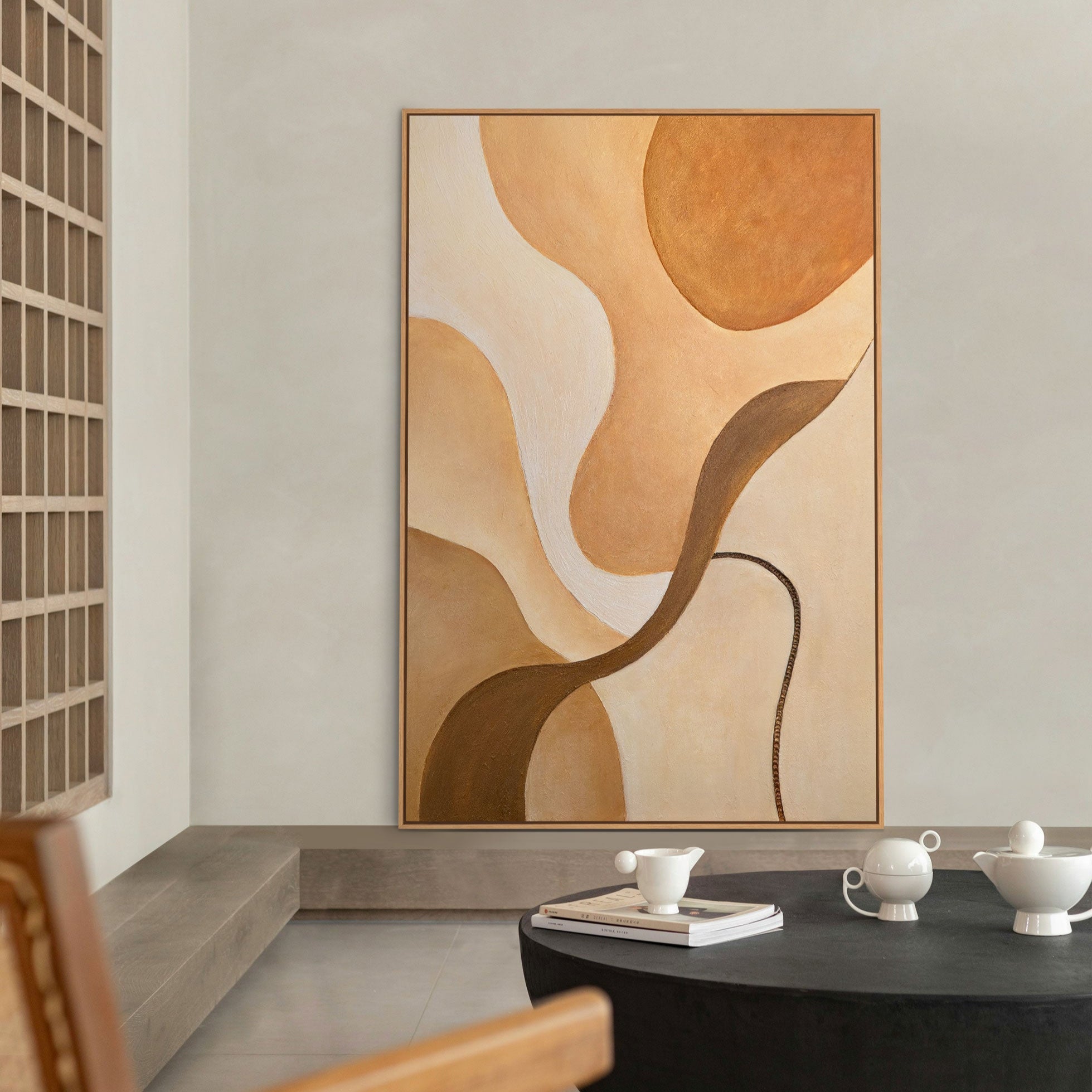 Dieses handgemalte Acrylbild auf Leinwand ist perfekt für moderne, minimalistische Interieurs. Es verbindet organische Formen mit zeitloser Eleganz und schafft eine warme, ausgewogene Atmosphäre. Ideal als Wanddeko fürs Wohnzimmer oder Büro – mit sicherem Versand und kostenloser Lieferung.