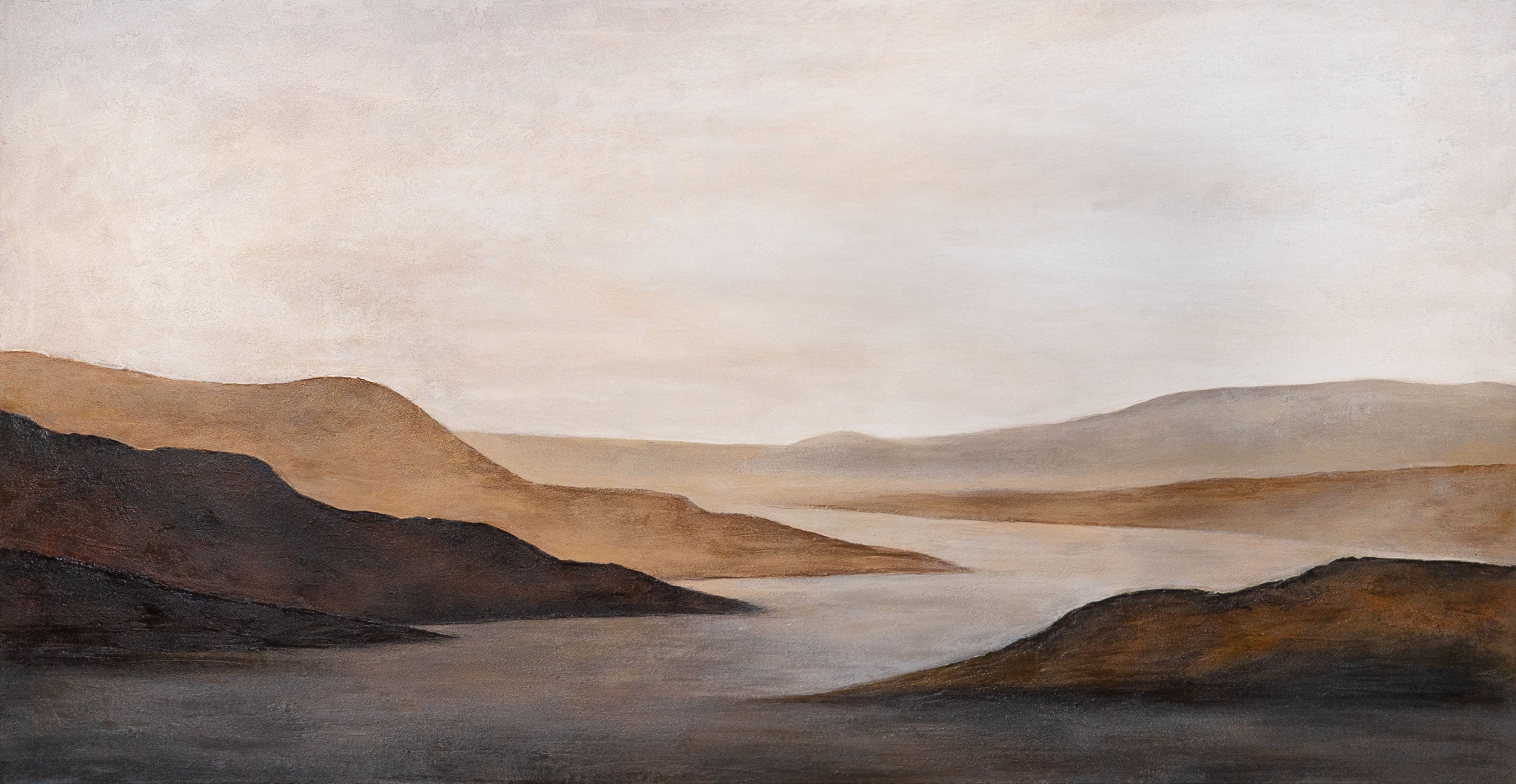 Enjoy the calm atmosphere of the hand-painted canvas painting "Gentle Sunrise." Warm earth tones in Beige, Brown, and Gray gently blend together to form a harmonious landscape, capturing the beginning of a new day full of peace and tranquility. The textured surface adds depth, making the painting an elegant focal point.