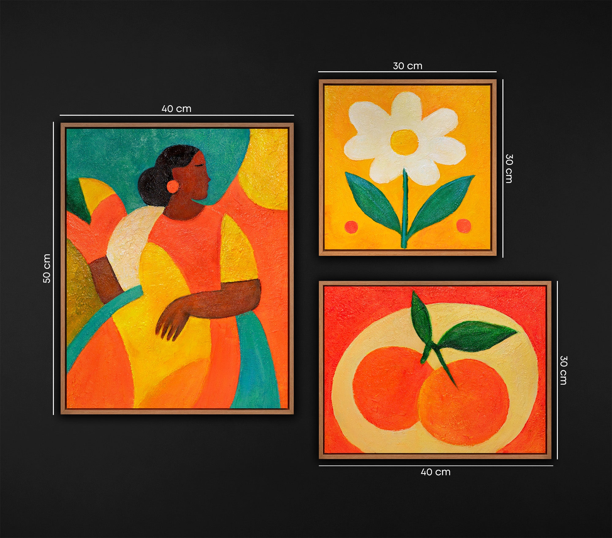 Farbenfrohe Inspiration für Ihr Zuhause: Ein Statement der Moderne Tauchen Sie ein in eine Welt voller Energie und Farbe. Das Set "Vibrant Life" ist ein außergewöhnliches Wandbilder Set Wohnzimmer, das florale Motive, Früchte und abstrakte Porträts in einer harmonischen 11-teiligen Komposition vereint. Diese modernen Bilder für das Wohnzimmer bringen mit ihren kräftigen Rot-, Orange- und Grüntönen sofortige Frische und moderne Kunst Acryl in jeden Raum.