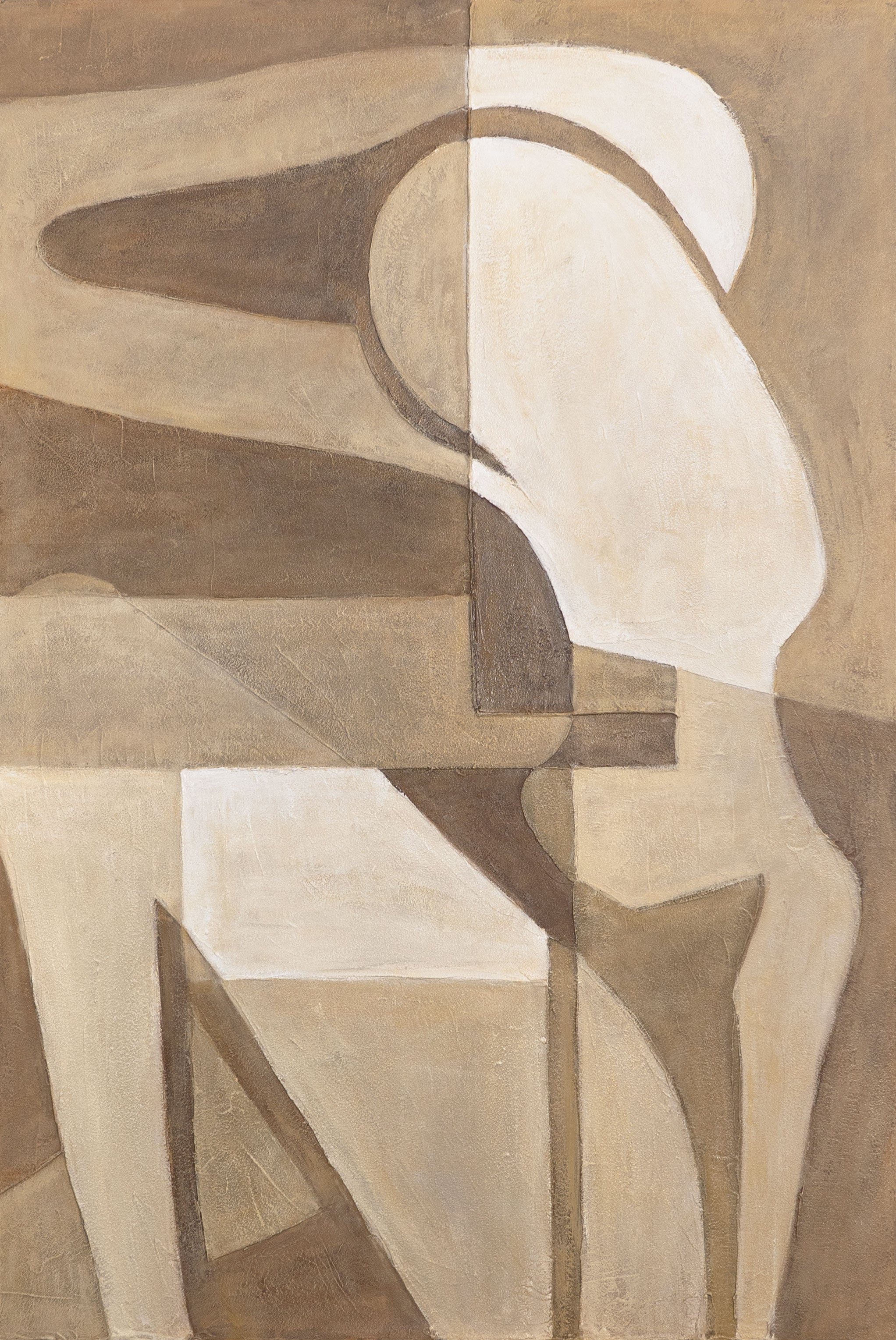 "Abstract Tenderness" unites geometric forms and gentle movement into a poetic composition. The figure appears reduced, almost as if formed in thought – embedded in warm, harmonious brown tones and softly textured surfaces.