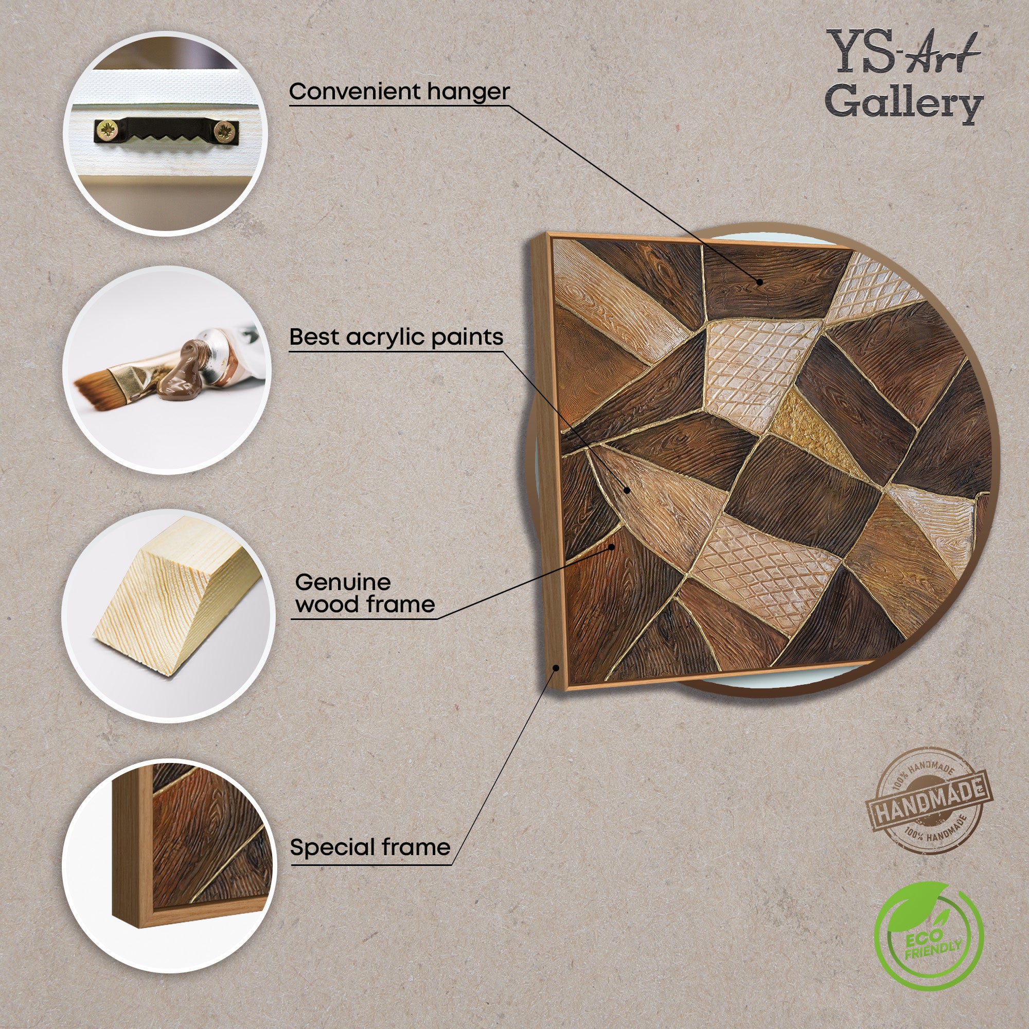 • Farben: Braun, Gold, Beige, Holztöne