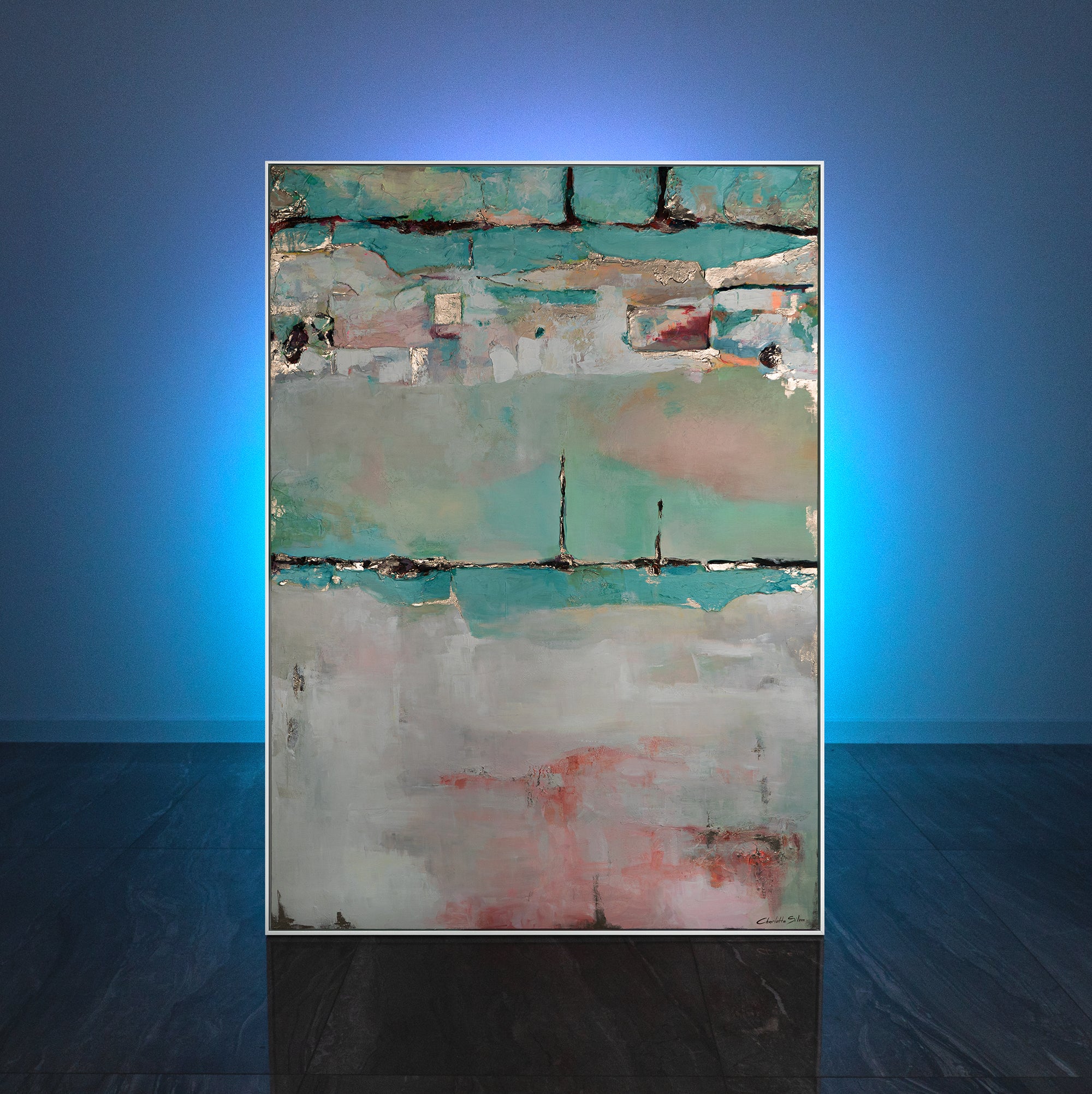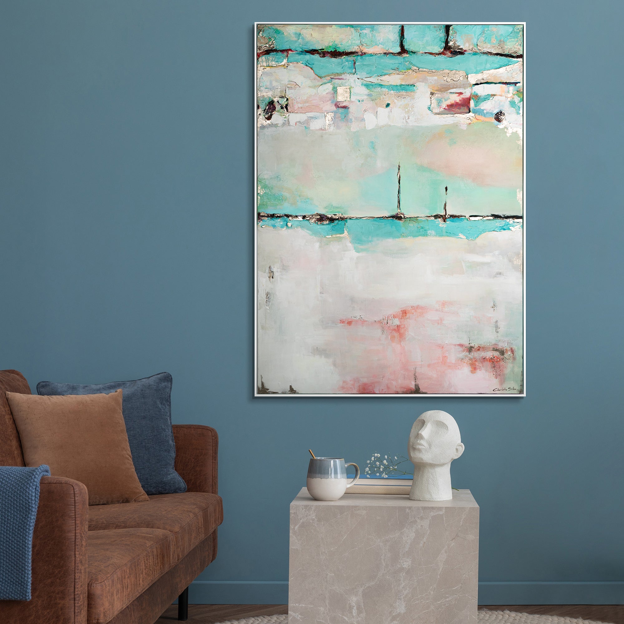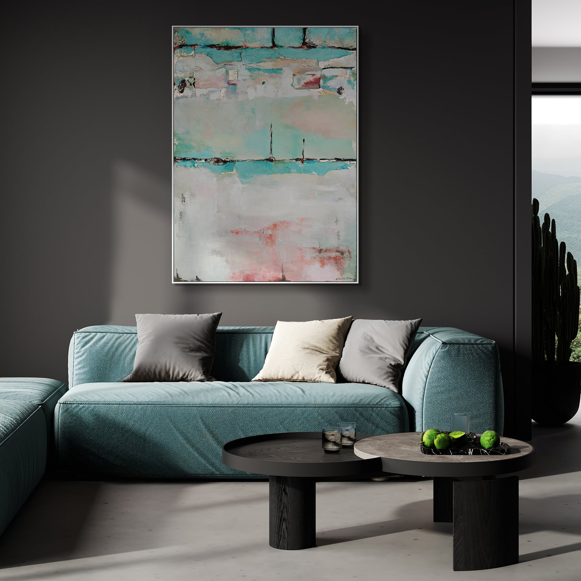 This hand-painted canvas painting captivates with its texture and subtle color gradients, which lend every wall a sense of depth and harmony.