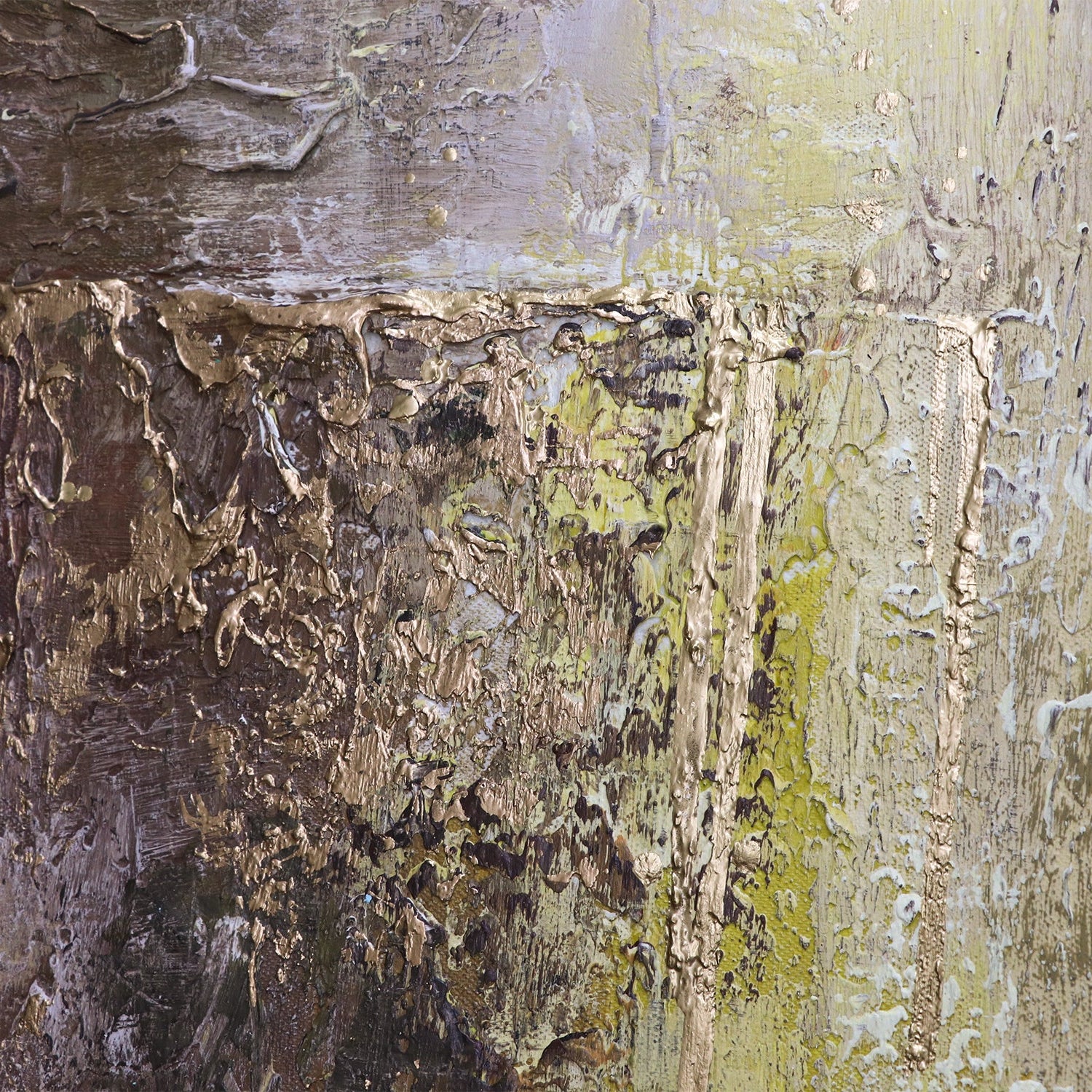 • Strukturierte Acrylmalerei Gold Grau Relief Nahaufnahme