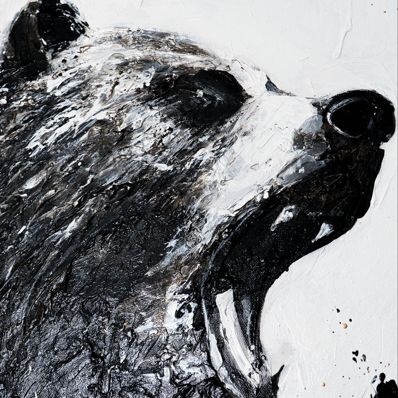 • Nahaufnahme Bär Acrylmalerei Schwarz Weiß Gold Struktur