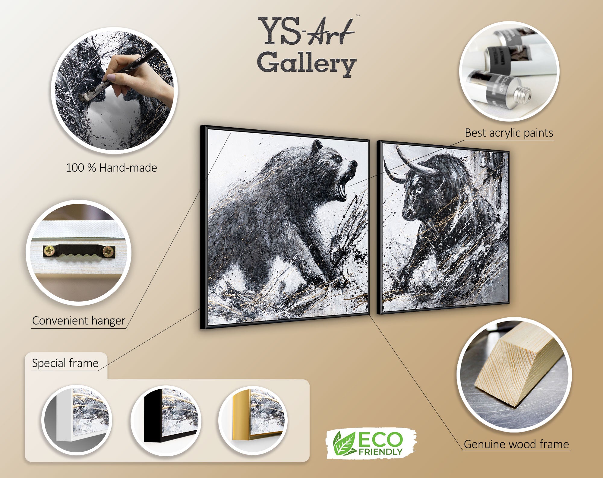 • Hand-painted Diptych with Bull & Bear with Frame – Office Wall Decor