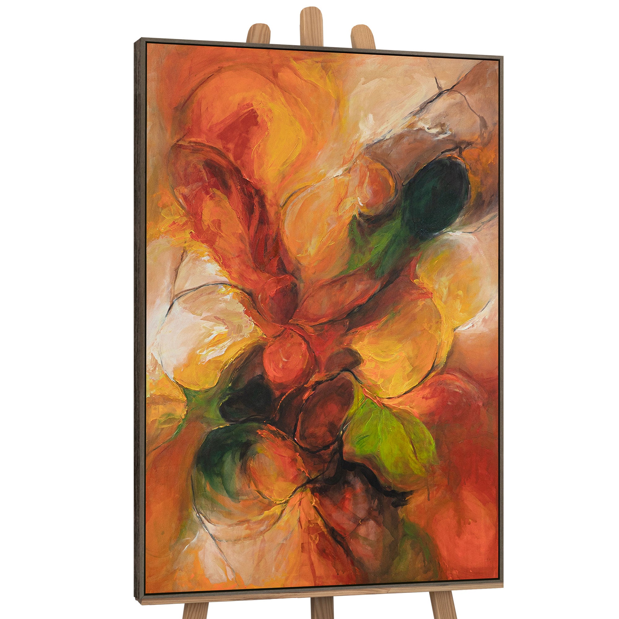 Handgemaltes Acrylbild mit Rahmen „Herbsttanz“ – Abstrakte Kunst in warmen Farbtönen