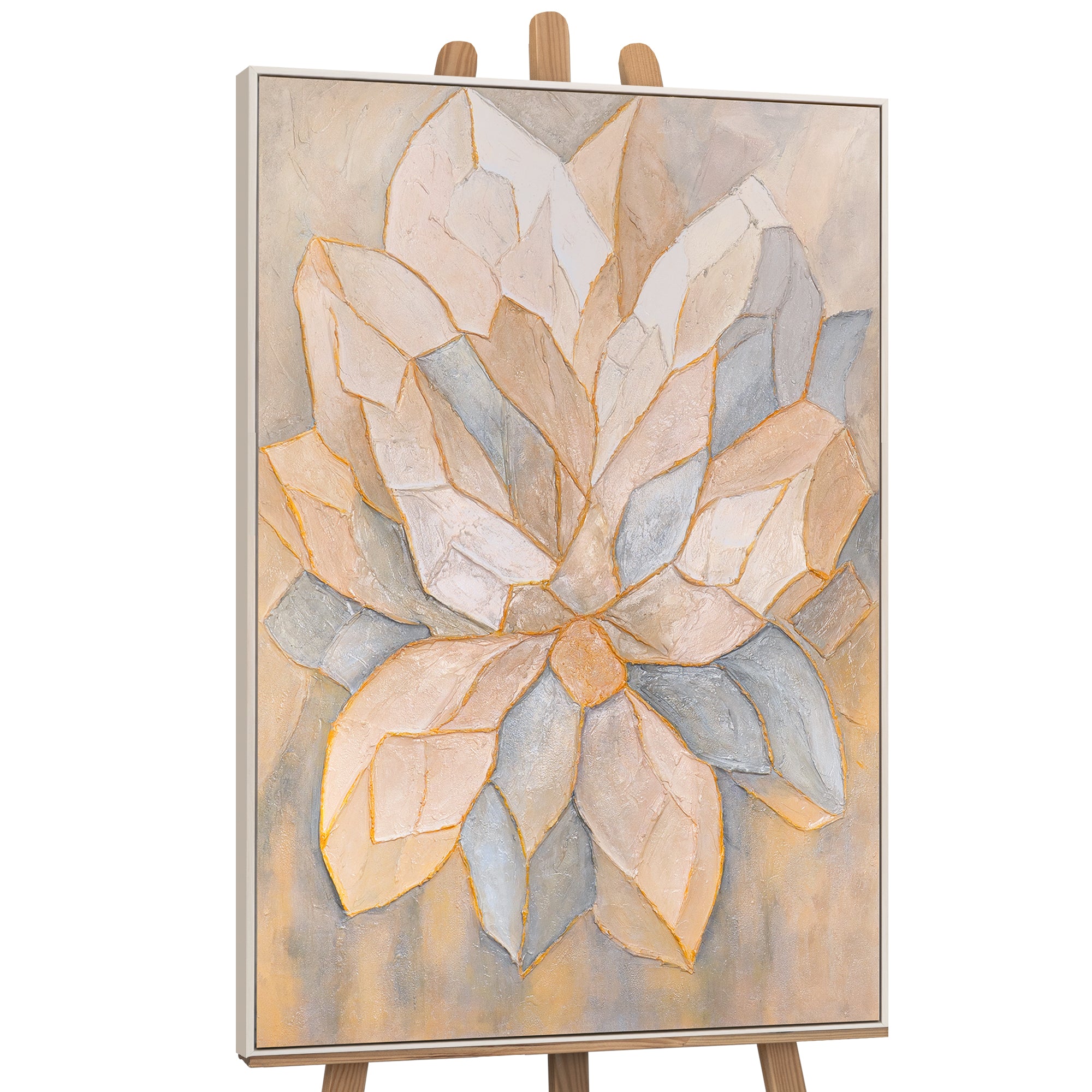 Handgemaltes Acrylgemälde mit Rahmen „Facetten der Blütenblätter“ – Abstrakte florale Wandkunst