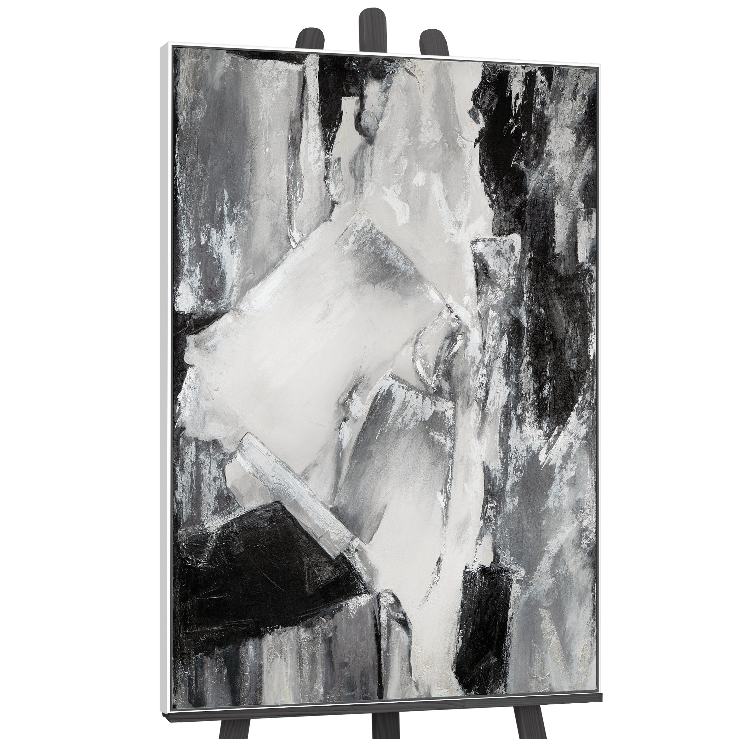• "Contrasting Reflections" Black White Art Hand-Painted Abstract Canvas Artwork with Frame