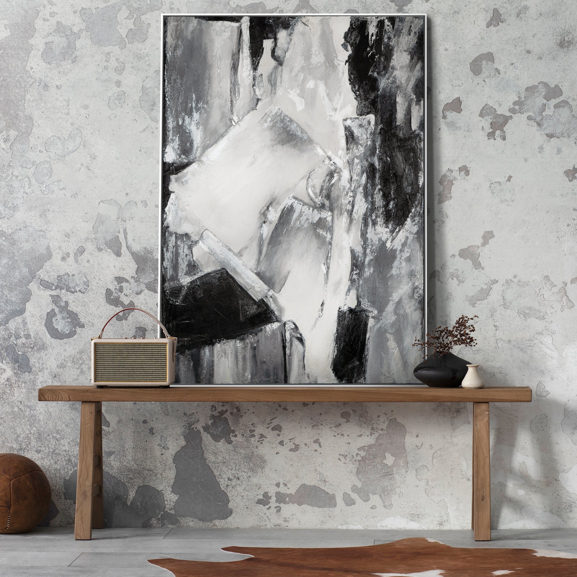 • Abstraktes Leinwandbild Schwarz Weiß moderne Wandkunst