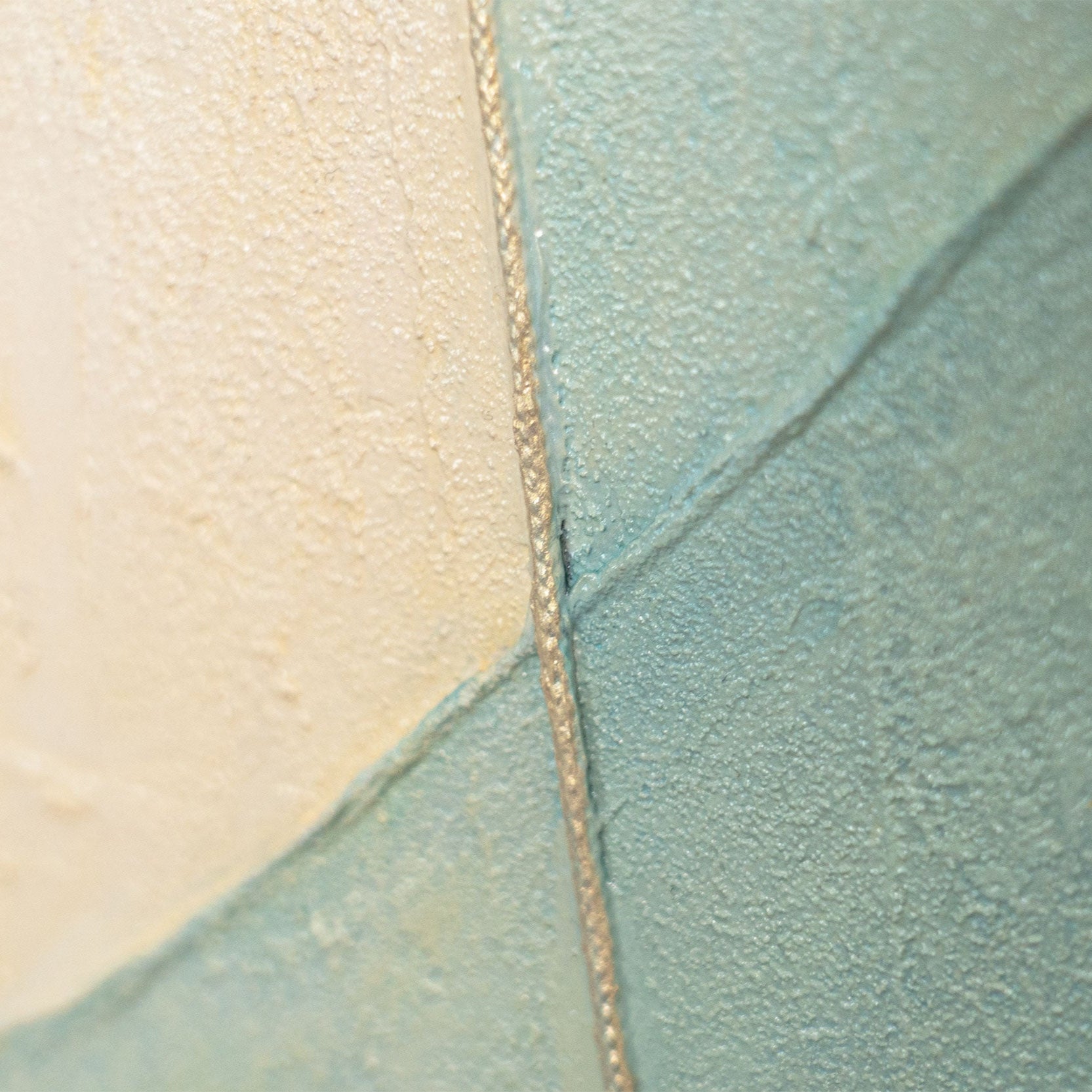 „Morgendämmerung über dem Meer“ erstrahlt in sanften, lichtdurchfluteten Farbtönen – ein Spiel aus Creme, Hellblau und Beige, das den Moment zwischen Nacht und Tag einfängt. Die feine Struktur auf der Leinwand verleiht Tiefe und Bewegung, während die zarten Linien einen meditativen Rhythmus schaffen.
