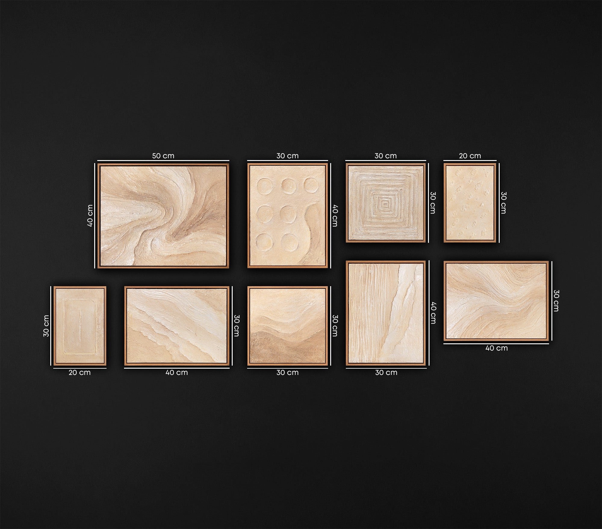 Flexibilität nach Maß: Wählen Sie zwischen einem 3 teiligen Bilder-Set, einem 5-teiligen Set oder einer beeindruckenden 9-teiligen Komposition. Dieses Bilderset Wohnzimmer lässt sich perfekt an Ihre individuellen Platzverhältnisse anpassen.