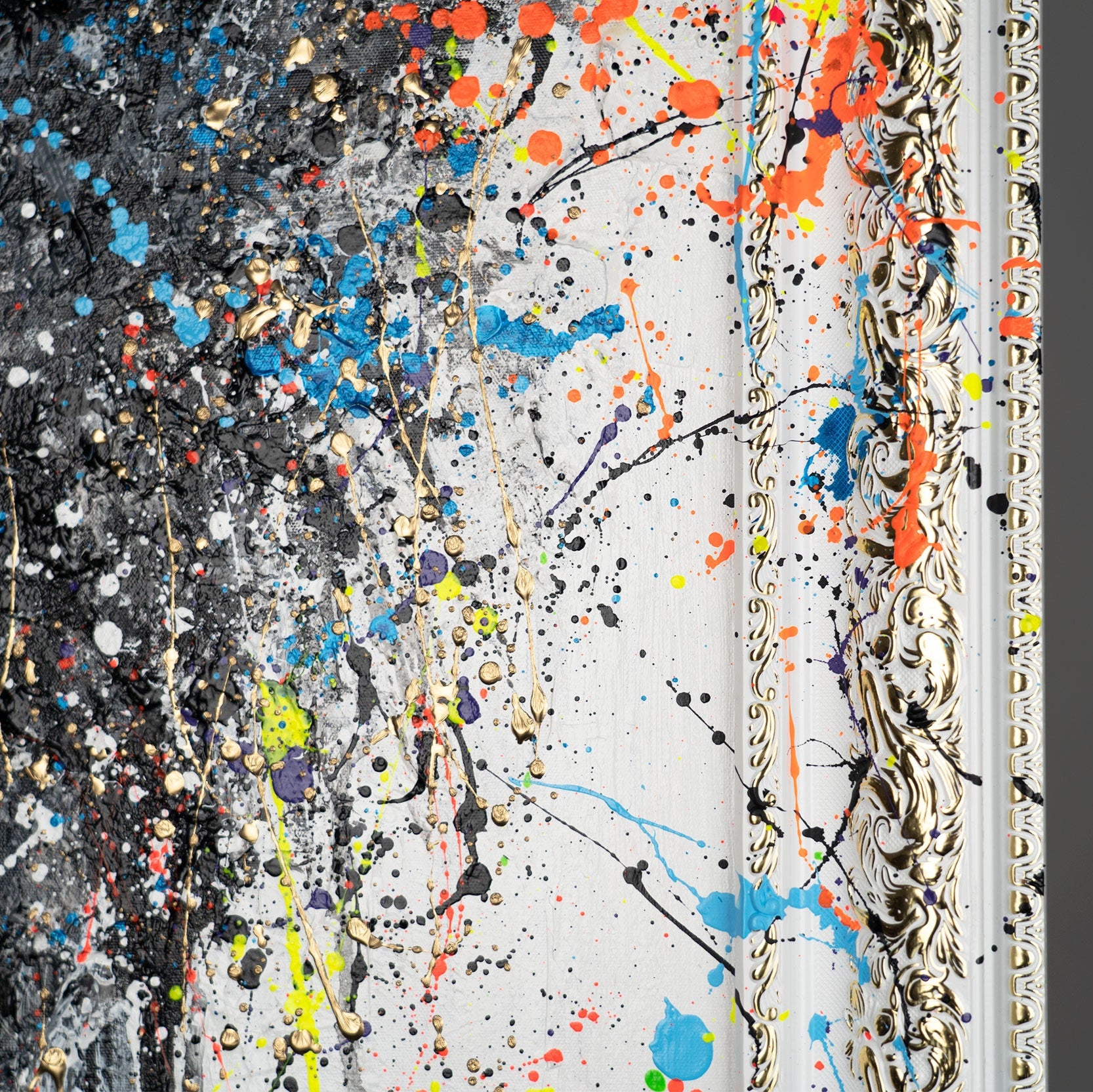• Strukturmalerei Acryl bunt Spritzer Detail Nahaufnahme