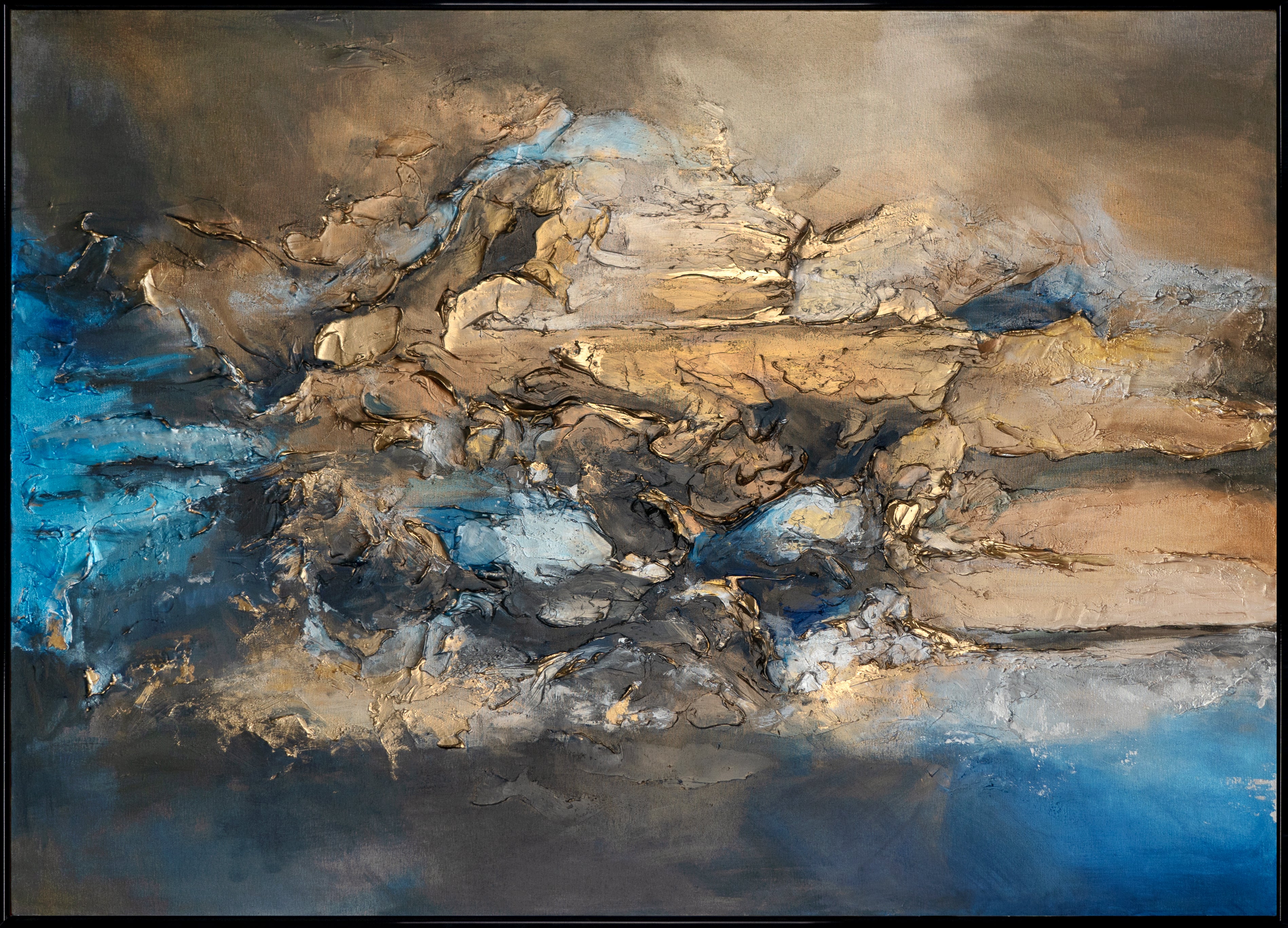 • Abstrakte Kunst, Handgemaltes Gemälde, Blaue Akzente, Kunst mit Rahmen, Originalkunstwerk, Zeitgenössische Wandkunst, Künstlerische Wanddekoration, Texturierte Leinwand, Moderne Wandkunst, Exklusive Wohnkultur, Hochwertige Acrylfarben, Einzigartige Inneneinrichtung, Umweltfreundliche Wandkunst