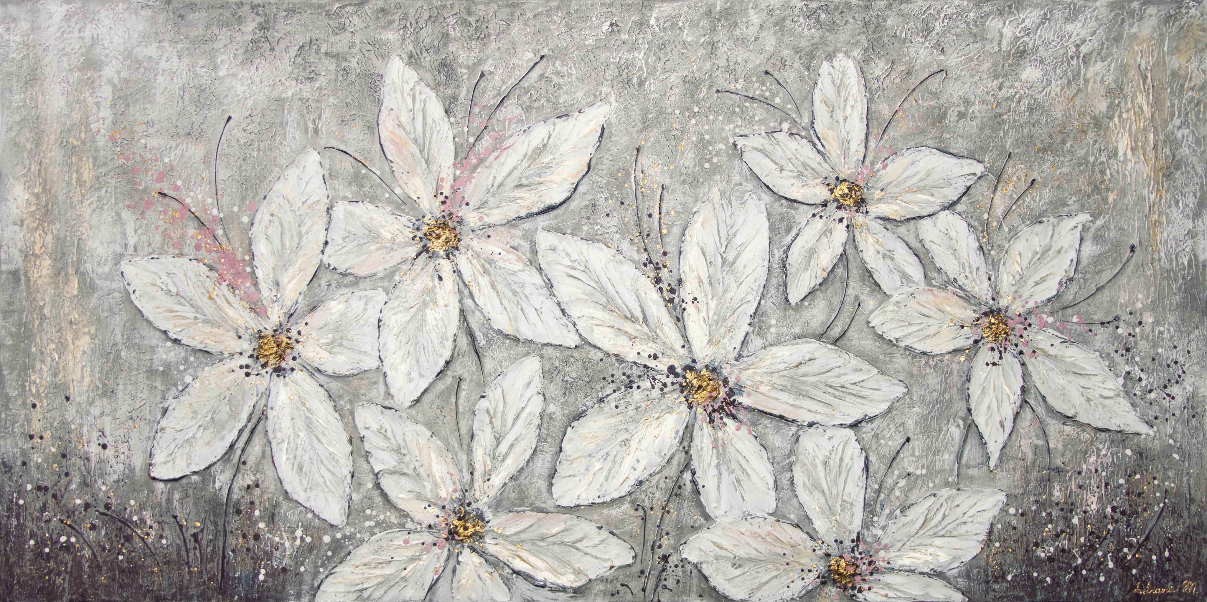 Delicate, large white flowers are reminiscent of warm spring and summer days in the cold seasons. Fill your home every day with a positive atmosphere. The painting is ideal for the bedroom, living room, study or kitchen. Only high-quality materials were processed in the painting.