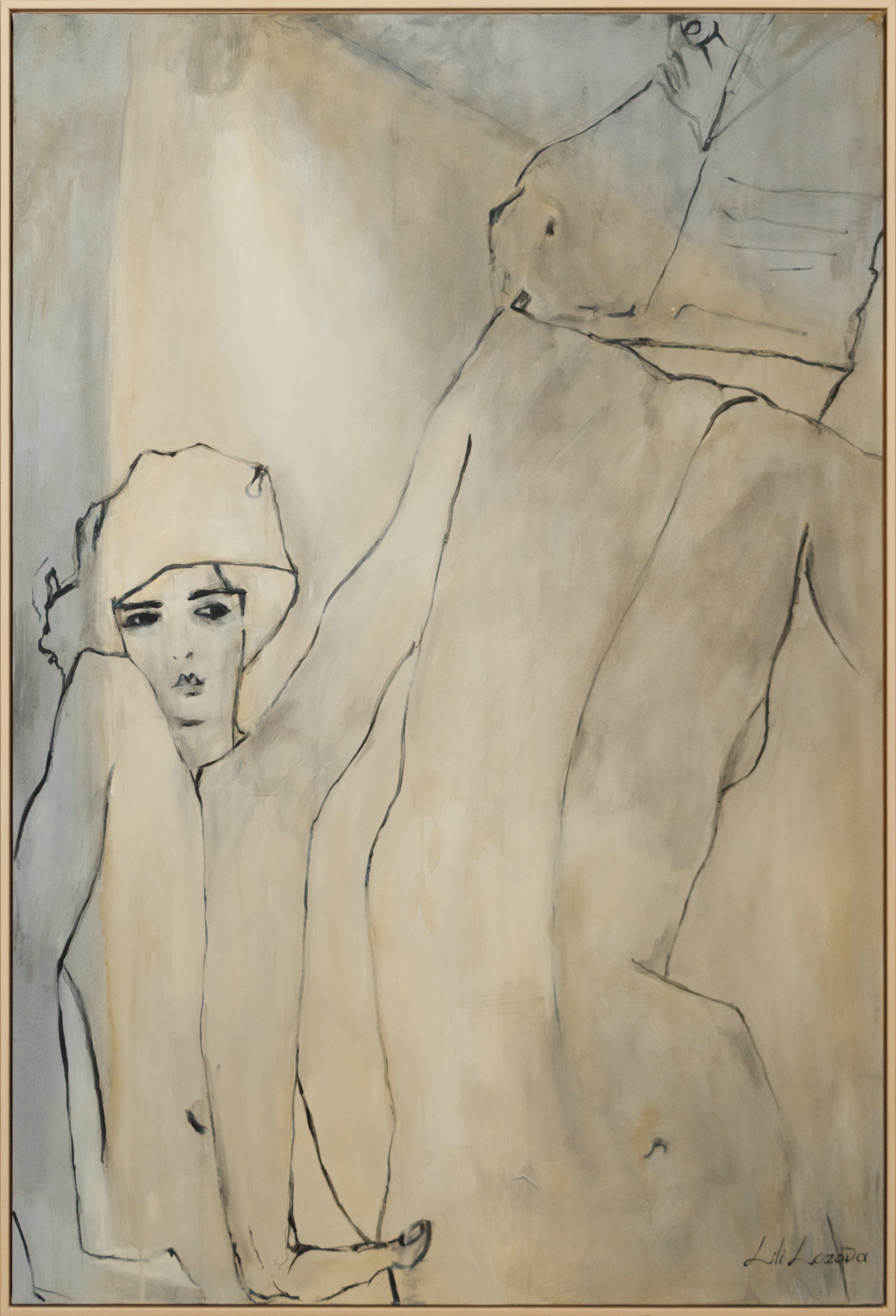 • abstrakte Linienzeichnung auf strukturierter Leinwand
