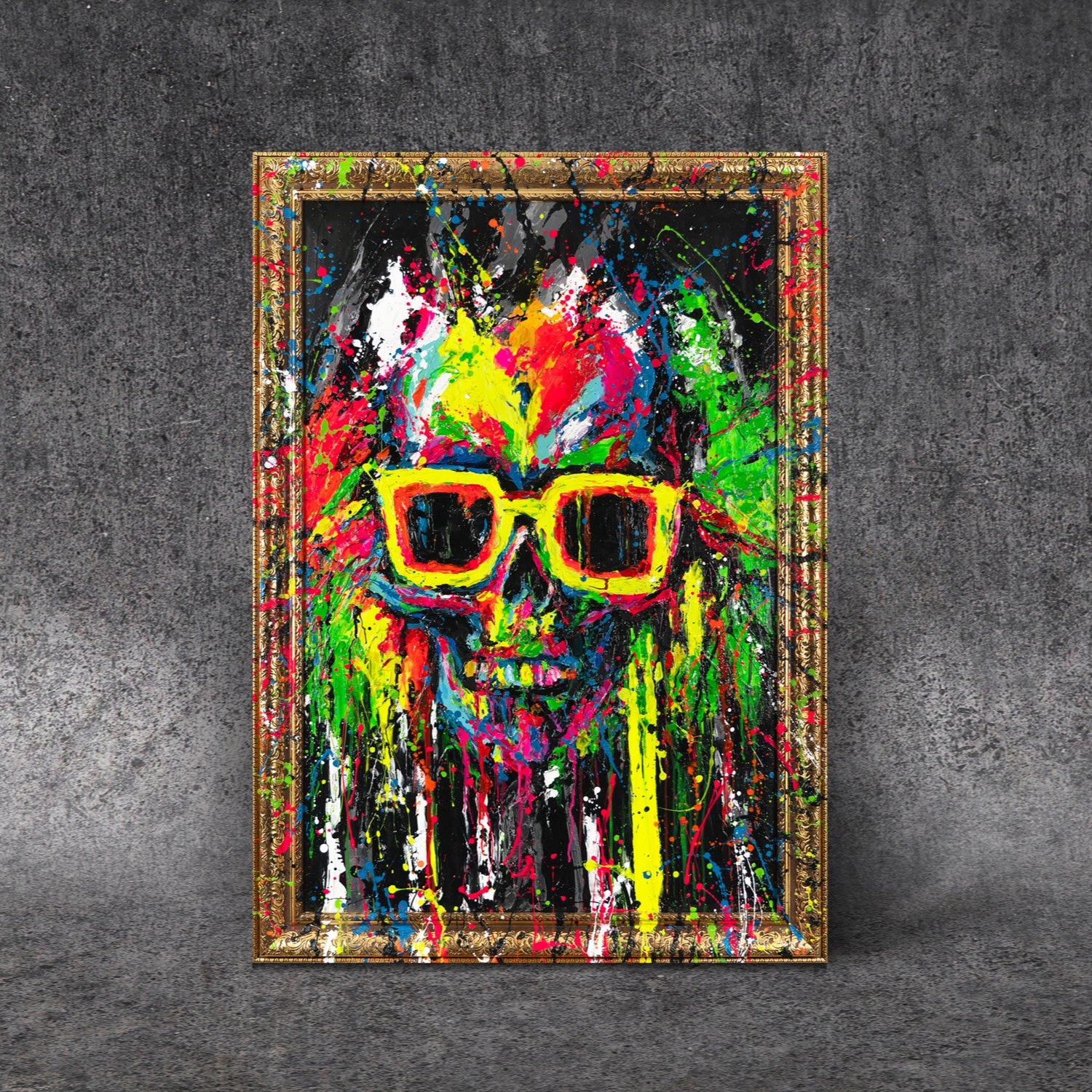 • Modern Art with Frame "Neon Splashes" Handmade Canvas Paintings