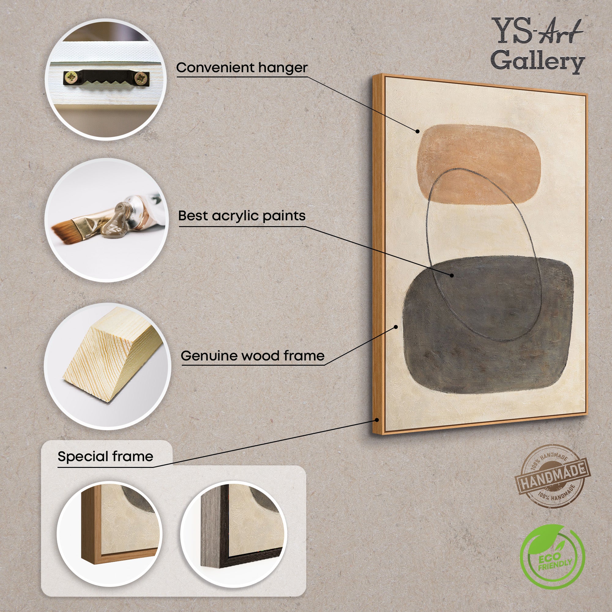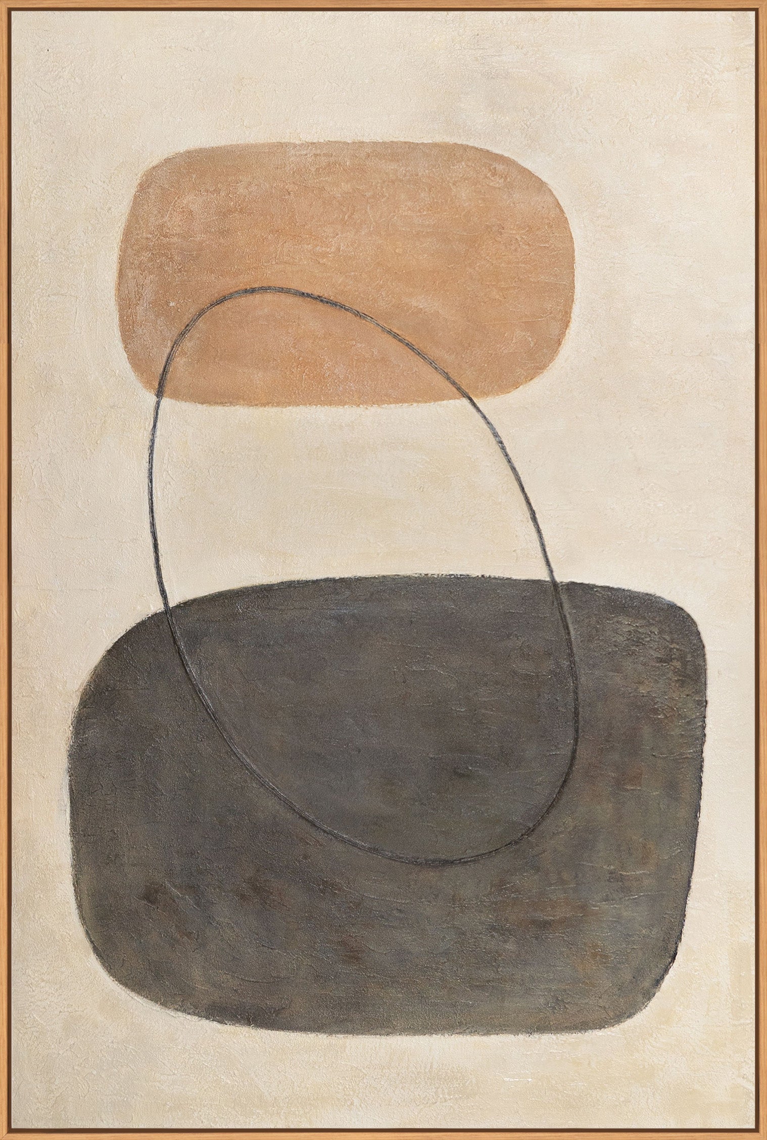 • Modern painting in beige and grey with frame – Abstract art “Balance of contrasts”