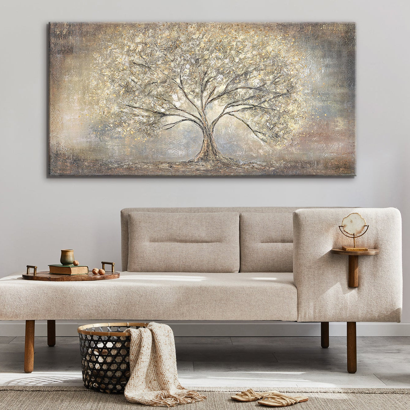 • Modern pictures living room "Gold Tree" with frame acrylic painting
